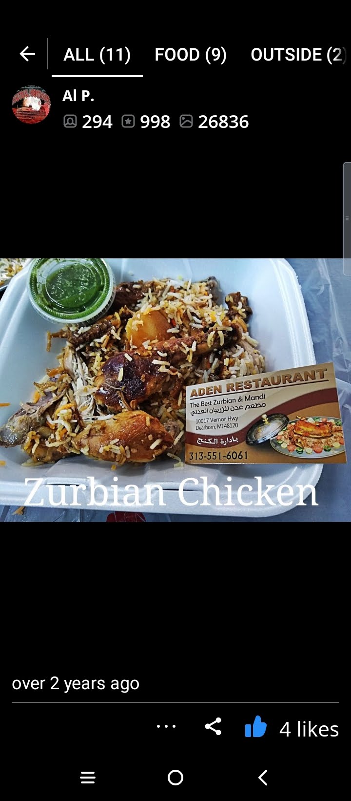 The most unique food dish you never heard of, Foodie's gotta go to Southend Dearborn. Yemeni Zurbian Chicken or Beef available everyday, yeah that's the whole menu now for a dozen years. Zurbian is the Yemeni version of Biryani, and is usually made for special occasions- when people gather such as weddings or Ramadan iftars, because it takes a long time to cook. Marvelous instant addiction Wowed ate only half the plate, had 5 Chicken Legs a Thigh and Taters. Getting both the Beef and Chicken next visit. Bright clean interior with 6 tables, cold drink's cooler and hot Yemeni Tea for the Win. Truly like nothing you've ever had, The dish of rice, meat and caramelised onions uses 7 spices for a meal of intense flavours. Southend Dearborn is always overlooked by all media and those paid Instagram foodies, naw you ain't getting paid. The area has 8 great places to eat, folks just can't find it. I've been a regular to the area for 60 year's, real Food adventure folks you need to explore....