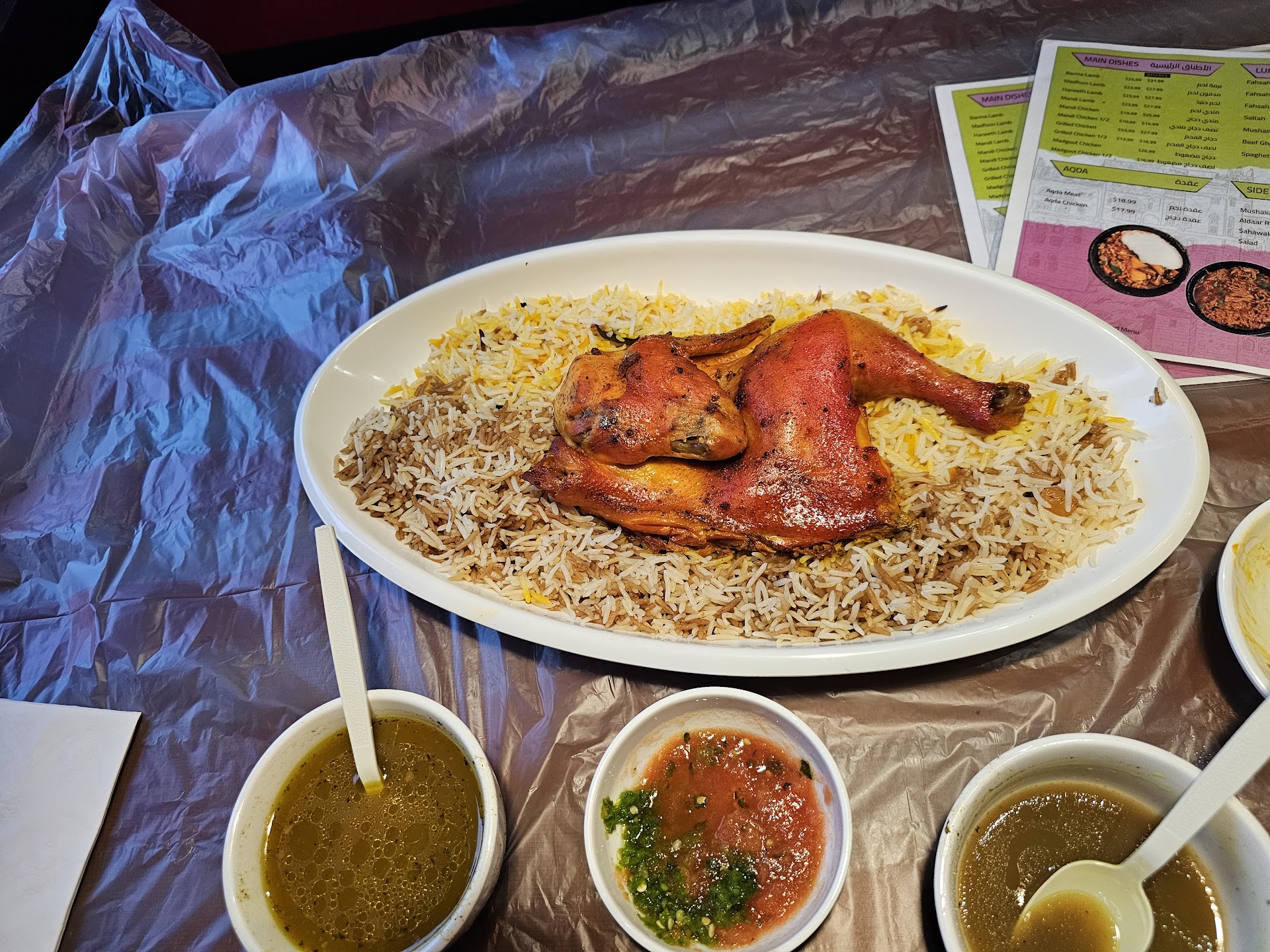 Read moreOrdered the fahsah and lamb haneeth with rice. They brought out a complimentary cup of soup which was 😋 and that set the tone for the following dishes which were very good compared to similar restaurants in the area. The fahsah was a good portion and tasted very authentic. Was given two different rices with the haneeth and the brown rice was made very well. Next time I'll ask for that only. The lamb was good as expected and was given a good size portion. The service was comparable to the middle east where they don't follow up much and just take your order and bring your food. Would definitely come back as we enjoyed the flavors better than the other near restaurants and won't have to drive to Hamtramck anymore for good...