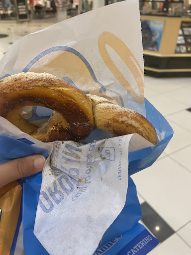 Ā Ā Ā Read moreI know that this place has new management because Jesus Christ, what are yāall doing. Iām amazed how inspection has not shut you guys down. Most unhygienic food location I have ever witnessed. One worker is on buttering duty and dips his entire sleeve into the butter. Youād assume theyād start a fresh batch of butter. No, why would they. I was waiting for my order and they thought they were smart trying to heavy load cinnamon and sugar on my burnt pretzel. You guys are that lazy to just explain to me you messed up and needed another 10 minutes? Thereās this fat worker who I also saw his hands into the ice and just munch on it. Like genuinely how are you guys still open lol Youāre better off buying pretzel at a different location that isnāt at...