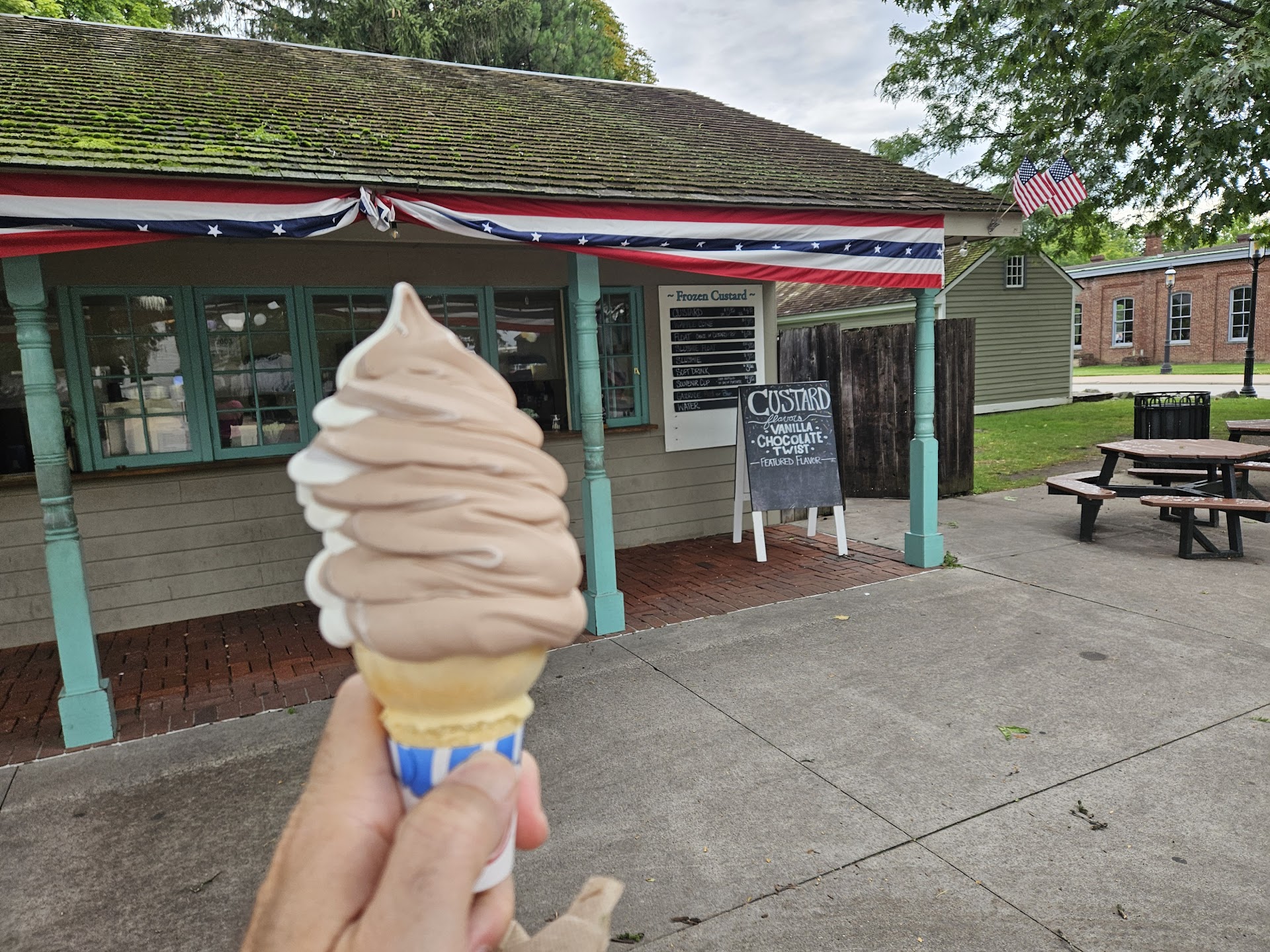 Frozen Custard shop within greenfield village, offering various flavors of custard offered. The custard shop is located between the Sir John Bennett Sweet Shop and the Thomas Alva Edison Statue. They also offer floats and a Blizzard-like blended,...