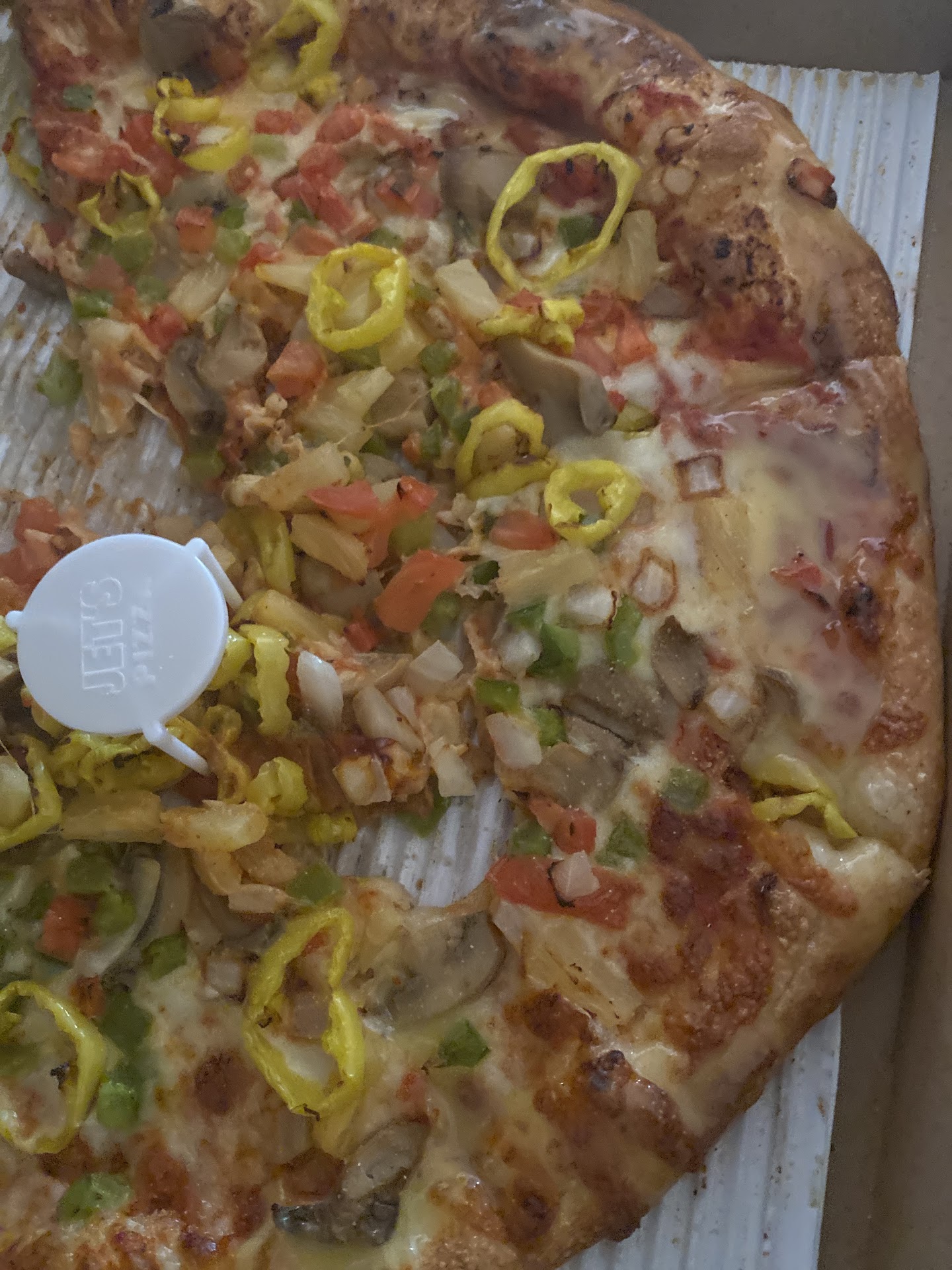 Ā Ā Ā Read moreJetās Pizza is always my go to for good pizza and Iāve been ordering from this location for years, however the service I received today was disappointing. I ordered pizza for delivery at 6:38pm and it wasnāt delivered until 7:48pm. I ordered my usual by text and my large veggie pizza was cold and prepared incorrectly. I checked the text I submitted and it was in fact submitted correctly but someone at Jetās wrote it incorrectly on the ticket. The manager Isabelle said there was nothing she could do even after acknowledging that someone messed up my order. More like there was nothing she was willing to do, in other words she could care less about the money I spent and the fact that someone on her watch submitted my texted order to the pizza preparer incorrectly. She didnāt even address the cold pizza and stated that while the ticket was submitted with the wrong info I got what I paid forā¦????? My veggie pizza was ordered minus olives and tomatoes, as you can see based on the pics my pizza was full of tomatoes, itās messy, and cold. š I paid $43 for pizza that I didnāt order and wonāt eatā¦terribly disappointed in Jetās Ford...