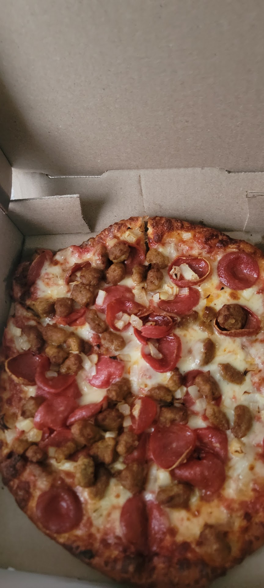 Read moreFirst time customer, ordered mushroom and pepperoni round. Ate one piece, called to say I didn't like it at all and wound up throwing the junk away and made dinner instead. The mushrooms are cheap rubbery canned ones and tasted expired.