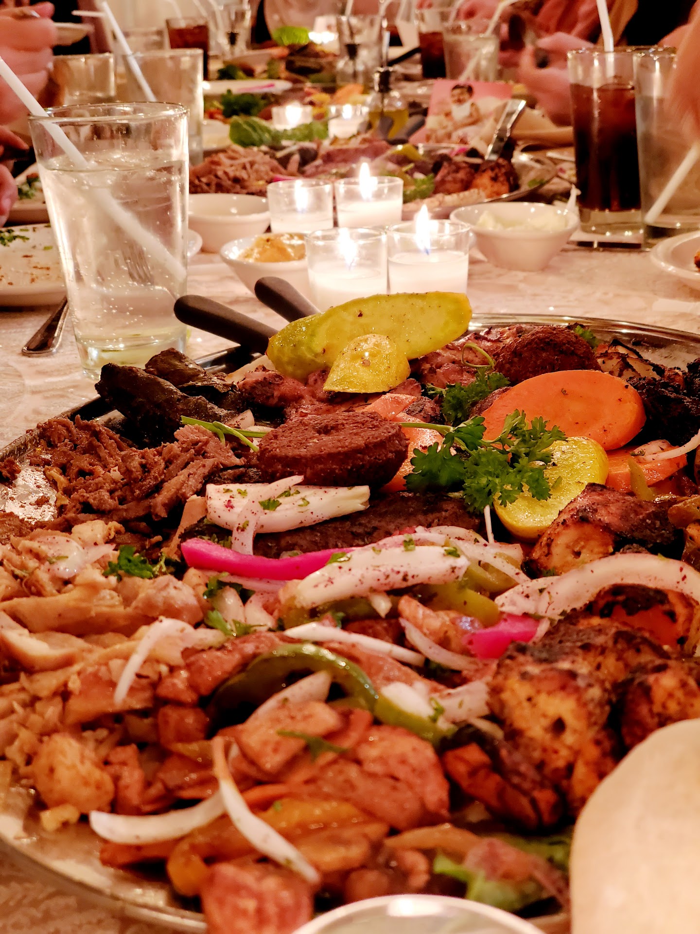 Wooed by the friendly citizens of Detroit we had encountered throughout our trip, we put too much faith in the kindness of a stranger and trusted our waiter to make recommendations. We were two people, he ordered us enough food for 6, or 8. We did not have a fridge in our hotel room so it was a huge waste but arguably it was our own fault. Our server set us up with the meat platter for two but added an order of lamb. I really wish he had have hashed out the details with us before sending it all to our table as it was not what we were expecting. He asked us what we liked, but never said what his plan was. We should not have agreed to trust his judgement and that is on us, but I also think he was trying to run up the bill to run up the tips. The lamb was great, but we would have been fine with just the lamb, and not the chicken, pork, AND beef. This was on top of a giant heaping plate of green salad, a platter of pitas and dips, enough rice pilaf to feed 6, and enough French fries for two people. No two people would have wanted that much food. We could also get french fries and a green salad anywhere, and we would have been happier with more middle-eastern flavours, but again, our fault for putting blind faith in a waiter who didn't really communicate his vision for "taking care of us". What could have been a really cheap, decent meal ended up being a lot more expensive and mediocre. Again, our fault for not steering the ship, but the server is not...