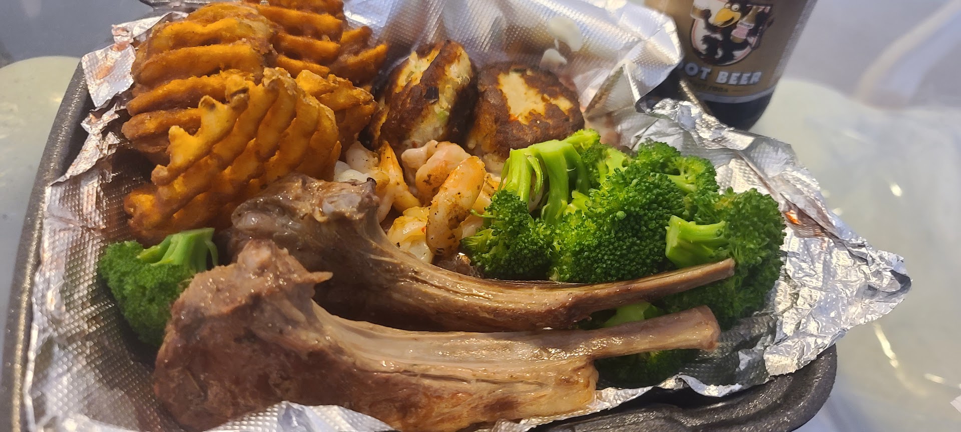Ā Ā Ā Read moreI have been here 3 times. Customer service is amazing. Beautiful woman that have beautiful attitudes. I keep saying i will order something different but find myself ordering the same Lamb Chop entree over and over. You get a couple piece of lamb chops, 3 pieces of jump shrimp, 2 crab cakes, broccoli and waffle fries. You can substitute the waffle fries for a loaded potatoe. The lamb chops always taste A-1 . Everytime never fails. The jumbo shrimp have a nice crunch and are also perfectly grilled. The crab cakes here are the best crab cakes ive had in my life. They actually taste like crab unlike most crab cakes out thereš¤. The rasberry sauce is to die for. You can dip anything into it and it will intensify the flavor. Vegtables are always steamed to perfection also. The wafle fries have a crisp on the outside and well done on the inside, perfect. The loaded potatoe was ok but thats really not my thing so it wouldnt be fair to judge on that. Make sure you order root beer with your food if your sober like mešš¤£š. This place is awsome, i love everything about them from customer service to the explosive flavors in the food. Ill try to order something else next time but...