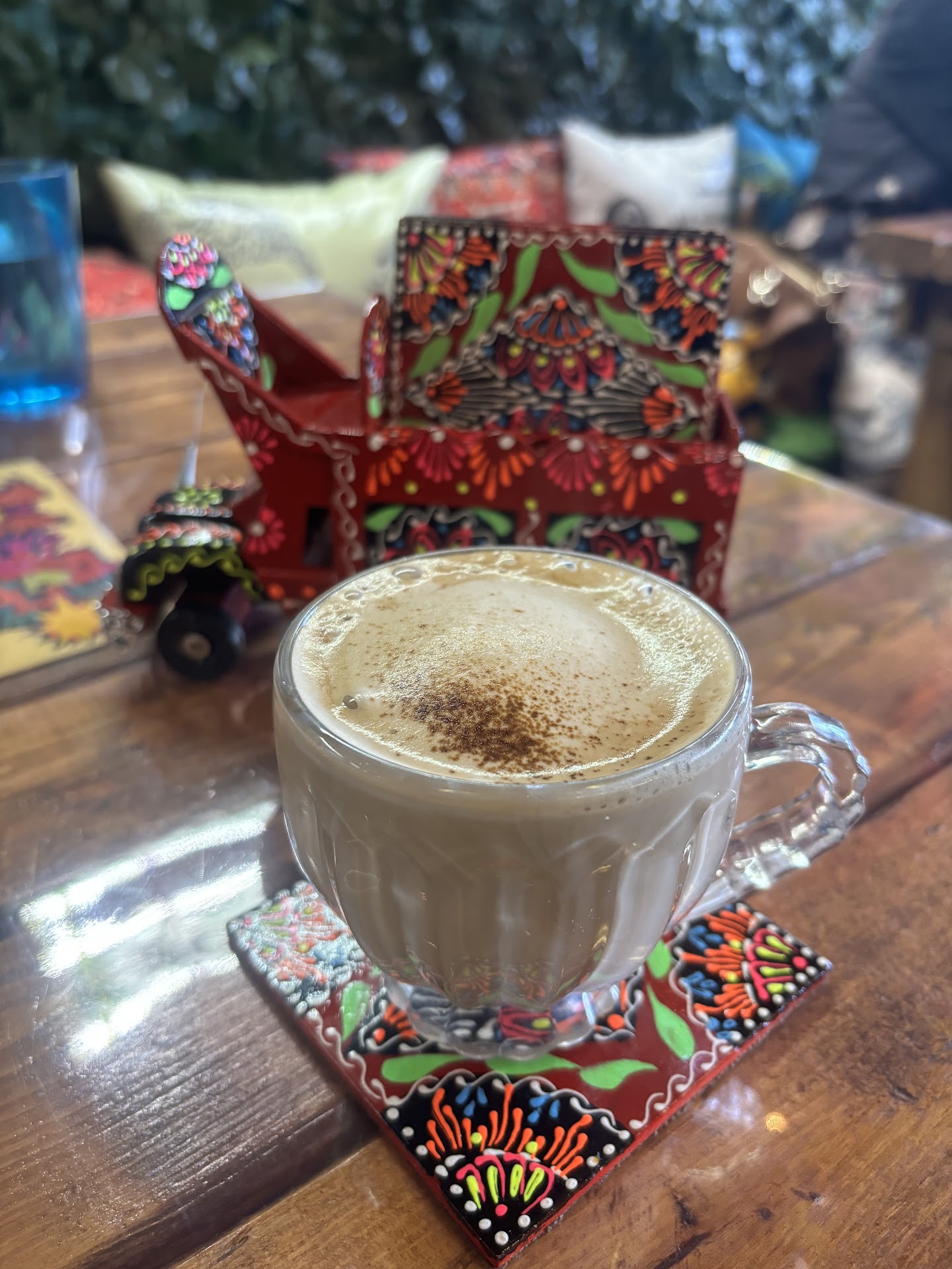 Read moreI was excited to try this cafe as I'd seen beautiful photos on Instagram but sadly it was a disappointment. While the decor, nachos and chai were all decent, here's why I am rating it lower: Discontinued menu items - to start out they handed each individual menu one by one after we asked for it as in the food, then drinks and then dessert menu. After ordering, the waiter came back and let us know the kashmiri chai had been discontinued while there was no indication of this on their menu. When we ordered dessert, he came back to our table and told us the entire back side of the dessert menu was discontinued. Are you kidding me?! If you don't make those drinks and dishes anymore, please remove from your menu. Chipped glass chai cup - as my sister was drinking her chai she realized her glass was chipped and almost cut her lip on it. While the waiter did take it away, I'd appreciate if the cafe was more careful. A chipped glass is so dangerous! Lastly, the falooda was missing key ingredients. It had no vermicelli or fruit like it showed in the picture and in the list of menu ingredients.
