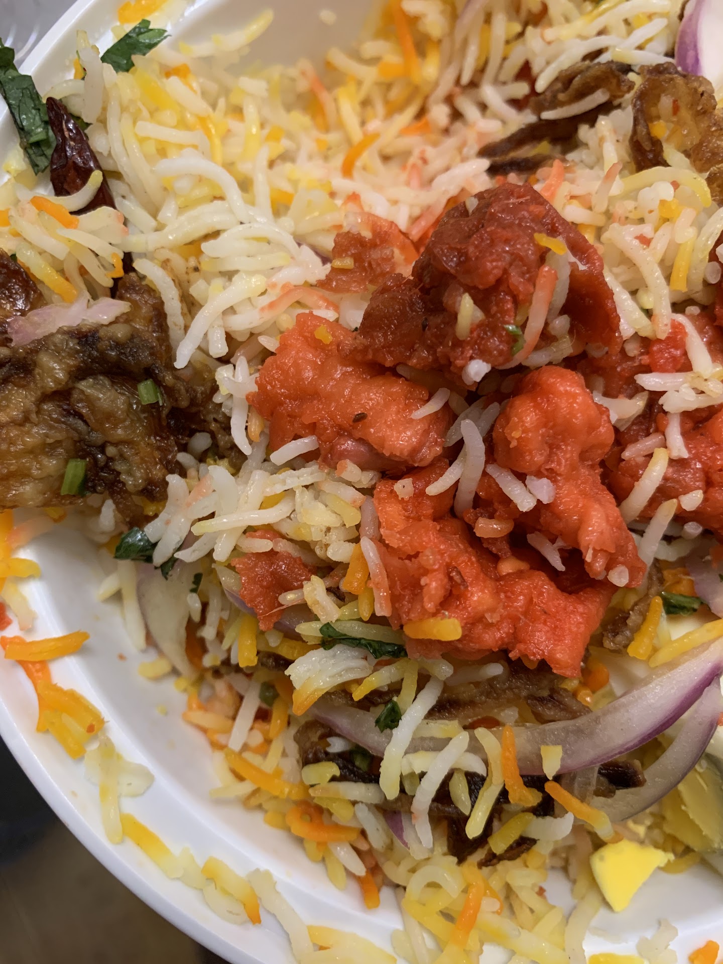 Gongura Goat Dum Biryani: The taste was amazing. Loved it! Felt lemon was used instead of real Gongura Leaves but then again in US, it is very difficult to obtain Gongura leaves outside of some places during a specific season and are really expensive anyway! Good job replicating the Gongura or Ambada Flavor!
