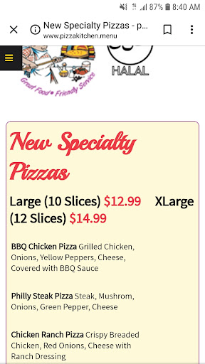 I love pizza kitchen but yesterday when I ordered an extra large specialty pizza (x large) the pizza arrived with only chicken, cheese and bq sauce. It was missing the onions and yellow peppers and the chicken was not even grilled and tasted like nothing. I just thought maybe it was because it was a Friday night and they were just busy but when I called back to say that my pizza was missing stuff on it, they told me that "it only comes with chicken, cheese & sauce unless I ask for more". I then told the person that, " That is NOT what it states on the menu". He agreed to send me a new pizza but said I would have to give back the old one; I said that was fine. Then they told me that it would take 55 more minutes and they did not seen thrilled when I agreed to that as well. Then when I got off the phone, they immediately called me bad and said tried to convince me that the reason my BQ chicken specialty pizza didn't have the other stuff on it (only chicken, cheese & sauce) was because I had ordered an extra large and only the large has everything on it. I tried telling them that is NOT what their online menu says but I didn't feel like getting into it anymore because I was just too hungry at this point. I just told them they should change what it says on their online menu then and they apologized and told me that they will apply a discount to my next future order. I was surprised by all of this because I LOVE pizza kitchen and they have awesome tasting food and nice workers on all my previous orders...