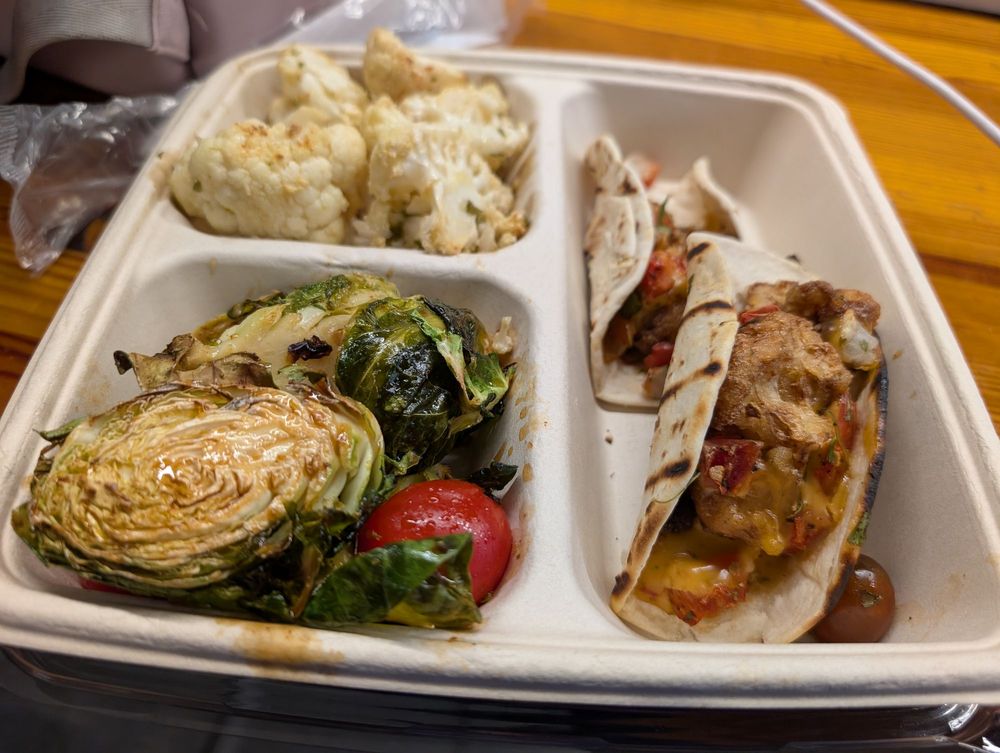 We landed at Detroit Airport and had some time before our connecting flight to Tampa, so we decided to grab lunch. We came across Plum Market Kitchen in the terminal and ordered a combination of tacos, brussels sprouts, and mashed potatoes from their menu.