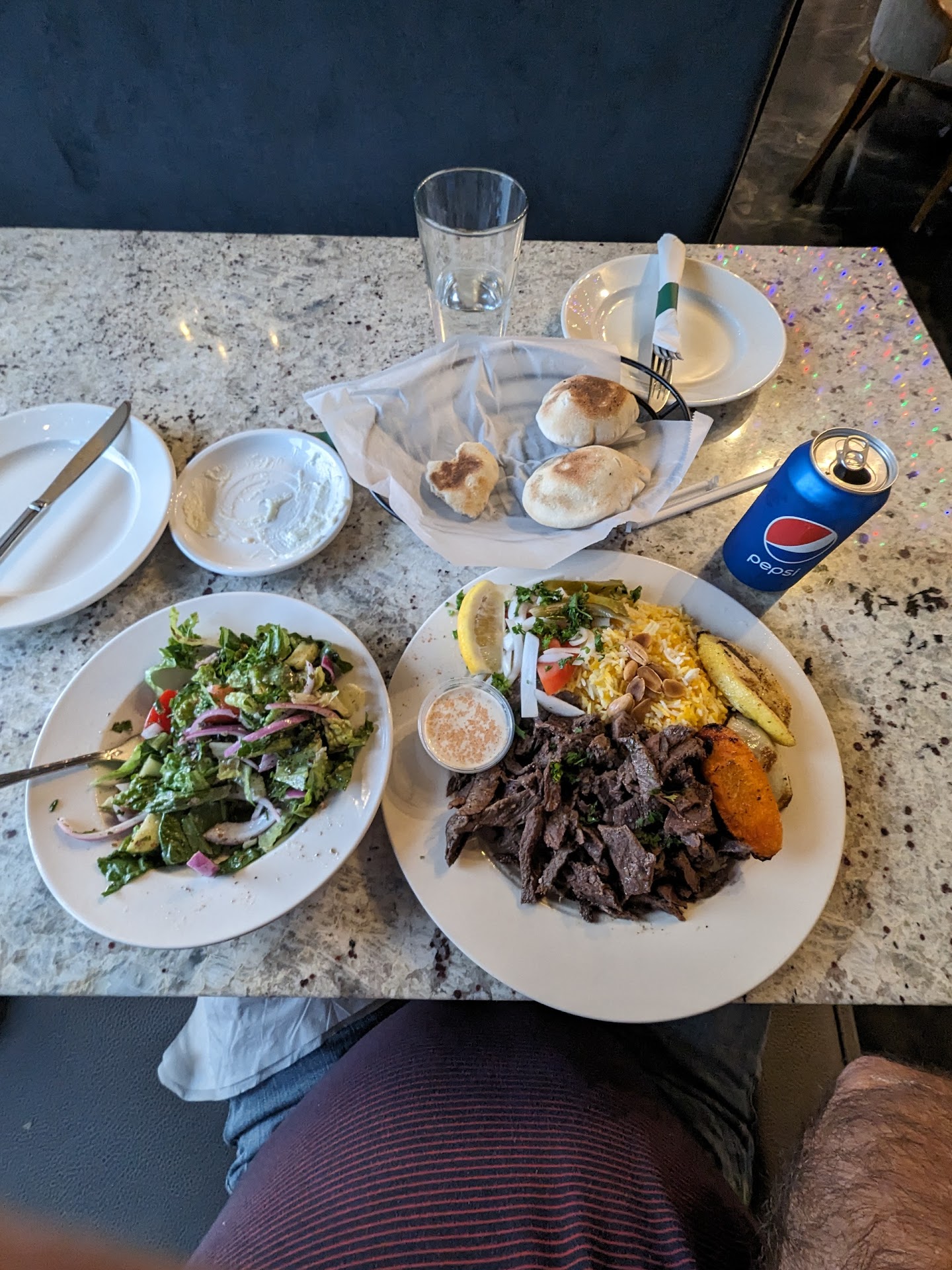 Read moreSo, WOW! Food is great here! I had looked at the menu online, and thought that it was a little expensive, so I was going to go elsewhere. But I had to visit another store in the strip mall, and was at the point where I don't care, I just want dinner. Well, now I see why the price is what I consider a little high. It's enough food for two people. When the server brought out the large salad that came with the Shawarma plate meal, I knew it was going to be more than I could eat. When the actual dinner came out, I definitely thought the price wasn't bad then. The food was very good, and the service was also very good! The ladies who work there are super sweet too. The lamb was very tasty and cooked properly, the salad was fresh, and the basket of pita bread that was brought at the beginning was hot and fluffy. If I'm back in the area again, it will be a return visit for sure! I had enough leftover for lunch today.