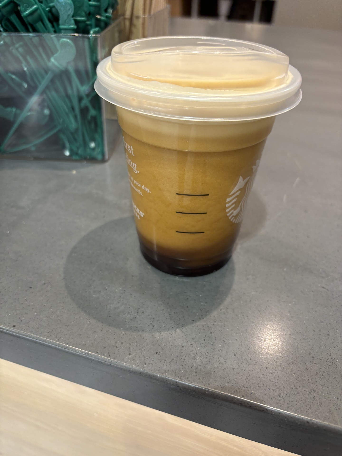 Happy to order cream and sugar coffee got a black coffee and a pointed direction to a public self serve station not cool for how much they charge you like it's not a 7-11 you know anyways happy to take off two stars one for each stir in (or not) condiments . I mean as a patronizing consumer I don't want to touch hundreds of others people germs sharing their public port a creamer. still the staff was nice well actually it was one person so that's not her fault it's the manager for having one worker There. It's fine black coffee was still good probably better for you anyways. Get more workers and stir in the condiments guys please. I put up $3.00 that adds up i tell ya what . Just my two...