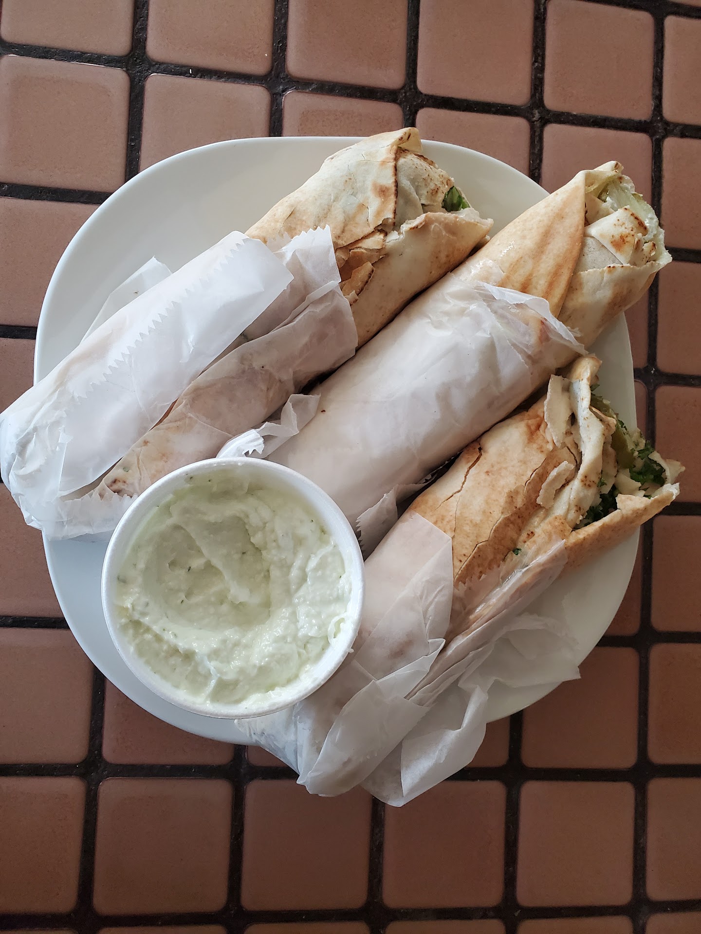 I placed a carryout order for three sandwiches (Chicken Shawarma, Hommous & Tabbouli, and Falafel), a small hommous, and garlic sauce. The crew working were super friendly (especially Mark who suggested their boneless grilled chicken for my next visit).