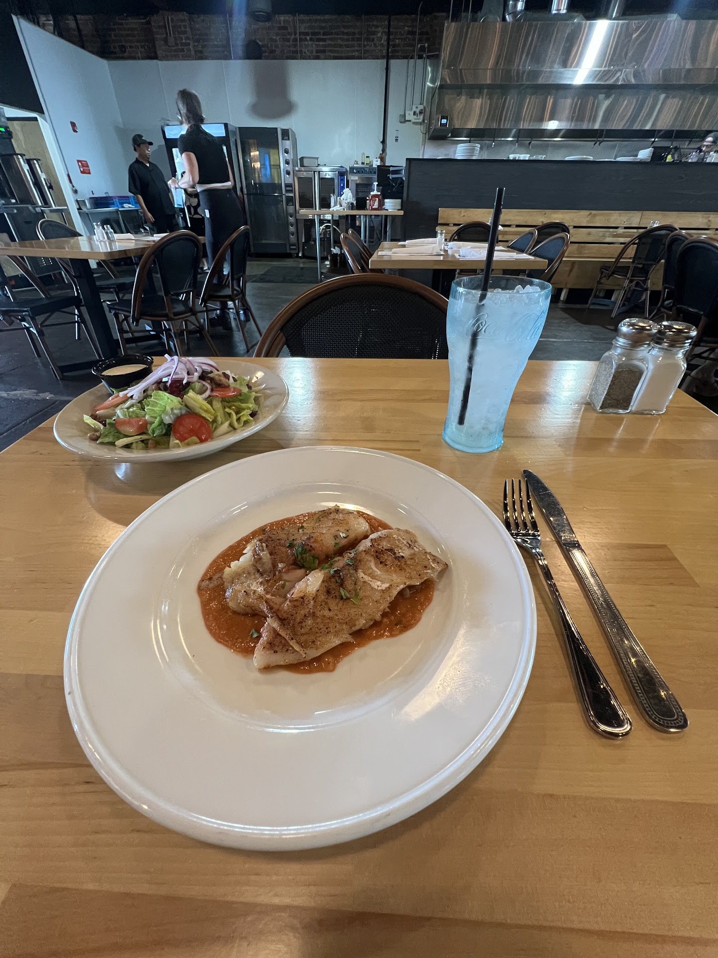 I ordered the current market fish special with a side salad, which was fresh tilefish from the Gulf served on a bed of red curry sauce. The dish was absolutely phenomenal. The tilefish was perfectly cooked, maintaining a tender and flaky texture, while the red curry sauce added a rich and flavorful complement that elevated the entire dish. This culinary experience deserves high recognition and was a true highlight of my visit.