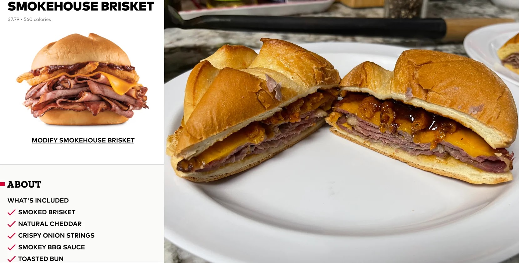 Read moreI've ate here many times over the years with no issues but tonight 4/14/2023 the food and service was disappointing. We placed an online order for pick up that included a kids meal and two Smokehouse Brisket meals. When we got home and opened the boxes we found both the Smokehouse Brisket sandwiches only had one slice of meat each. For a $30 order it should have at least slightly resembled the photo on the menu. I called the store and the manager wasn't the most friendly about the issue. Ended up calling customer service BC I didn't want to eat at the same location again to have our meals replaced. Customer service was also not helpful. Update 4/30/2023 I emailed the CEO of Arby's a few days ago and was contacted by phone within an hour of sending it. They were friendly, professional, apologetic and Fedex overnighted a gift card to me...which I appreciated and used at a different Arby's...