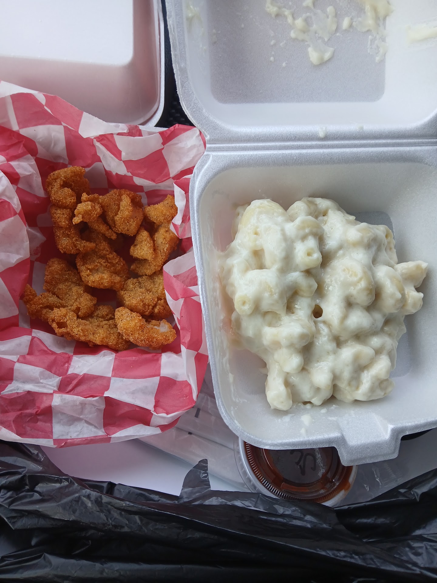 Ā Ā Ā Read moreThis place used to be one of my favorite places to dine at/carry out. These last two months and including today has been a dissapointing experience. Today the server/bartender not very friendly, she was to busy being social with people she knew. If u order 2 meals u have to specifically say dont put the orders in the same box, in which they seem to keep doing. I ordered catfish nuggets and mac n cheese. I got 9 small nuggets and a child size scoop of mac n cheese in which cost me about 25 dollars, when your kids mcdonalds happy meal has more food than what u have just paid 25 for thats crazy and then charged me a fee on top to use my card, and when I tried to talk to the server and ask when did they start charging to use your card, and when did the food prices go up, she blew me off by telling me its the economy. In which I understand that, but if this how they are doing business now, thats really sad to limit portions, raise food prices, charge for spending money with them and to end it with a rude server, and the server will tell u the prices are different because the menus arent updated. I enclosed pics on the 1st time I ordered catfish nuggets and tried again to see if any better. I really hate that this business is not the same friendly customer service and good food as before. The pics are 2 seperate days and neither was worth almost 25 dollars for just nuggets an...