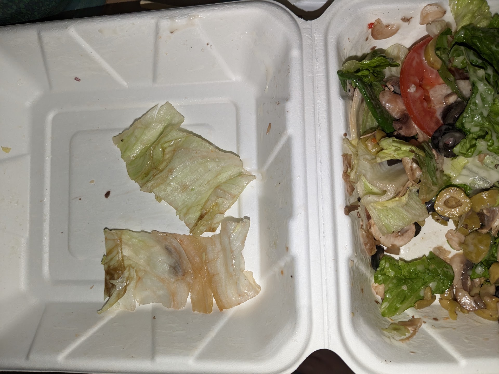 It's gone really down hill. I ordered a salad and not only did they screw up the order, I got considerably less salad than ever before - part of what I got was something that I would never even consider serving at home let alone sending it out with a paying customer - days old lettuce. The romaine was not fresh and had apparently gotten "brown" in places but that doesn't happen with fresh lettuce, only with days old lettuce (see pictures.) There wasn't a speck of iceberg in my "romaine and iceberg mixed" salad either.
