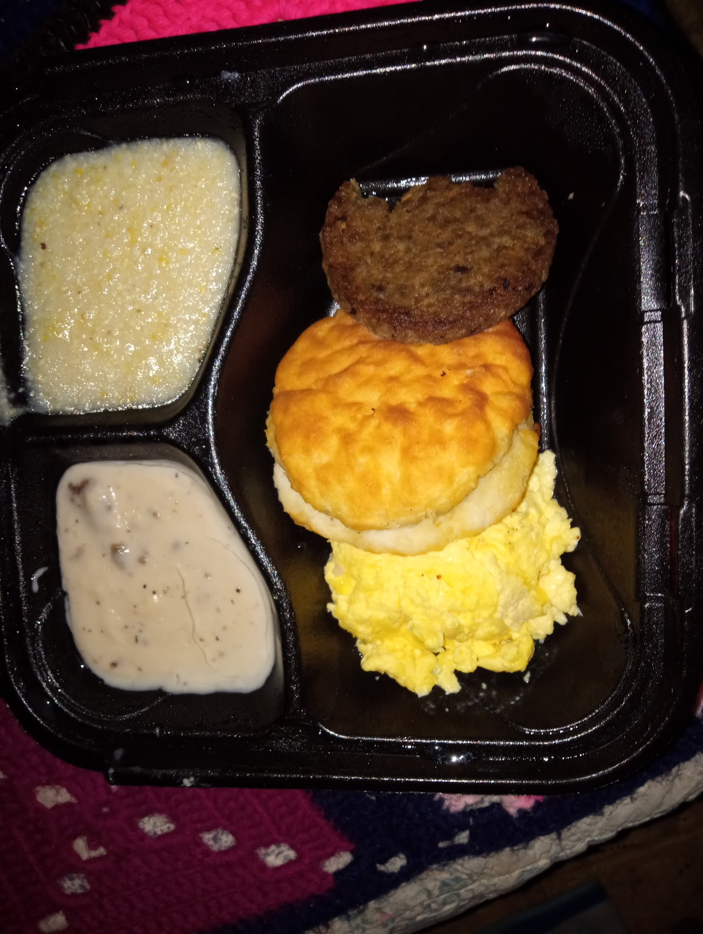 Original: Not sure what goes on here in the mornings that makes this Jack's hit and miss, but it's good sometimes and bad others. I mostly get breakfast here; the sausage, eggs, biscuit, gravy and grits (which I always replace the grits for another egg.).