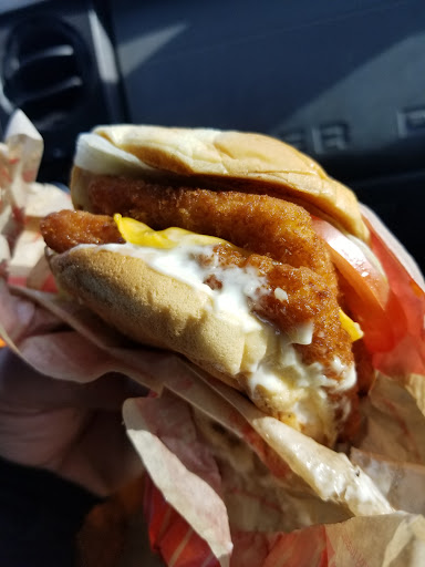 Read moreI don't usually eat here much but hubby and I dropped by on our way home from a long road trip for dinner. A girl was outside taking orders for the drive through. We couldn't see the menu yet so I asked if they had any chicken salads. She said they didn't so we both ordered grilled chicken club sandwiches, I asked for pickles on mine. When we drove forward enough to see the menu board, they do have several salads, some with chicken, no biggie, maybe she thought we meant chicken salad, like the chopped up with mayo type? Anyway, we get our sandwiches which each have a note on top to substitute american cheese(the menu board said cheddar or Swiss or some other "real" cheese), and one says add pickles, so pretty sure it was ours. We drive off, disappointed about the American cheese but too hungry and tired to fuss over it. While they did get the pickles right, there was no mayo or sauce of any type on them(menu board said mayo). What a huge disappointment. 3 strikes in one visit with only 2 items ordered. What are the odds they gave us the wrong order when it was 2 chicken clubs, one...