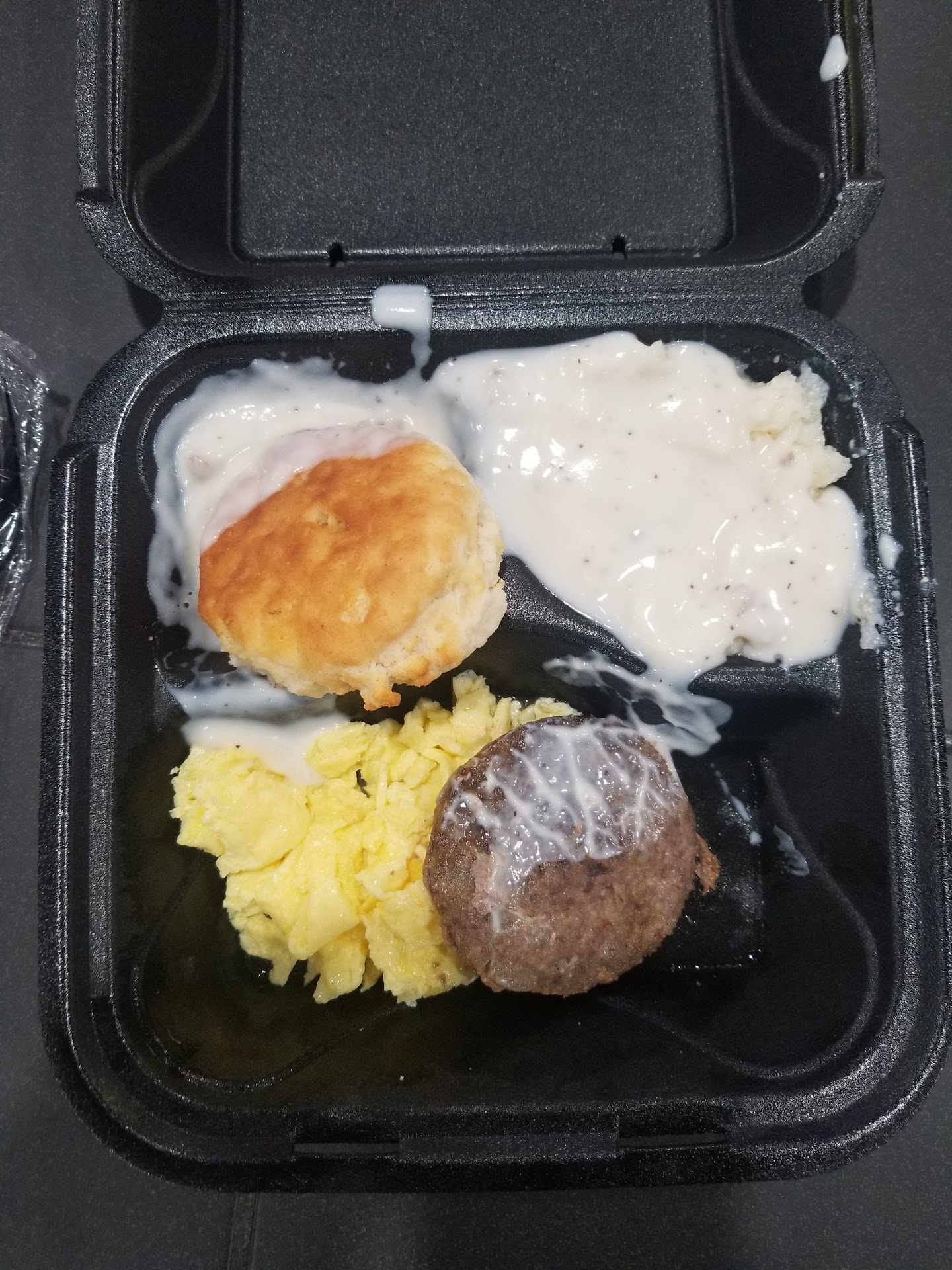 Original: Not sure what goes on here in the mornings that makes this Jack's hit and miss, but it's good sometimes and bad others. I mostly get breakfast here; the sausage, eggs, biscuit, gravy and grits (which I always replace the grits for another egg.).