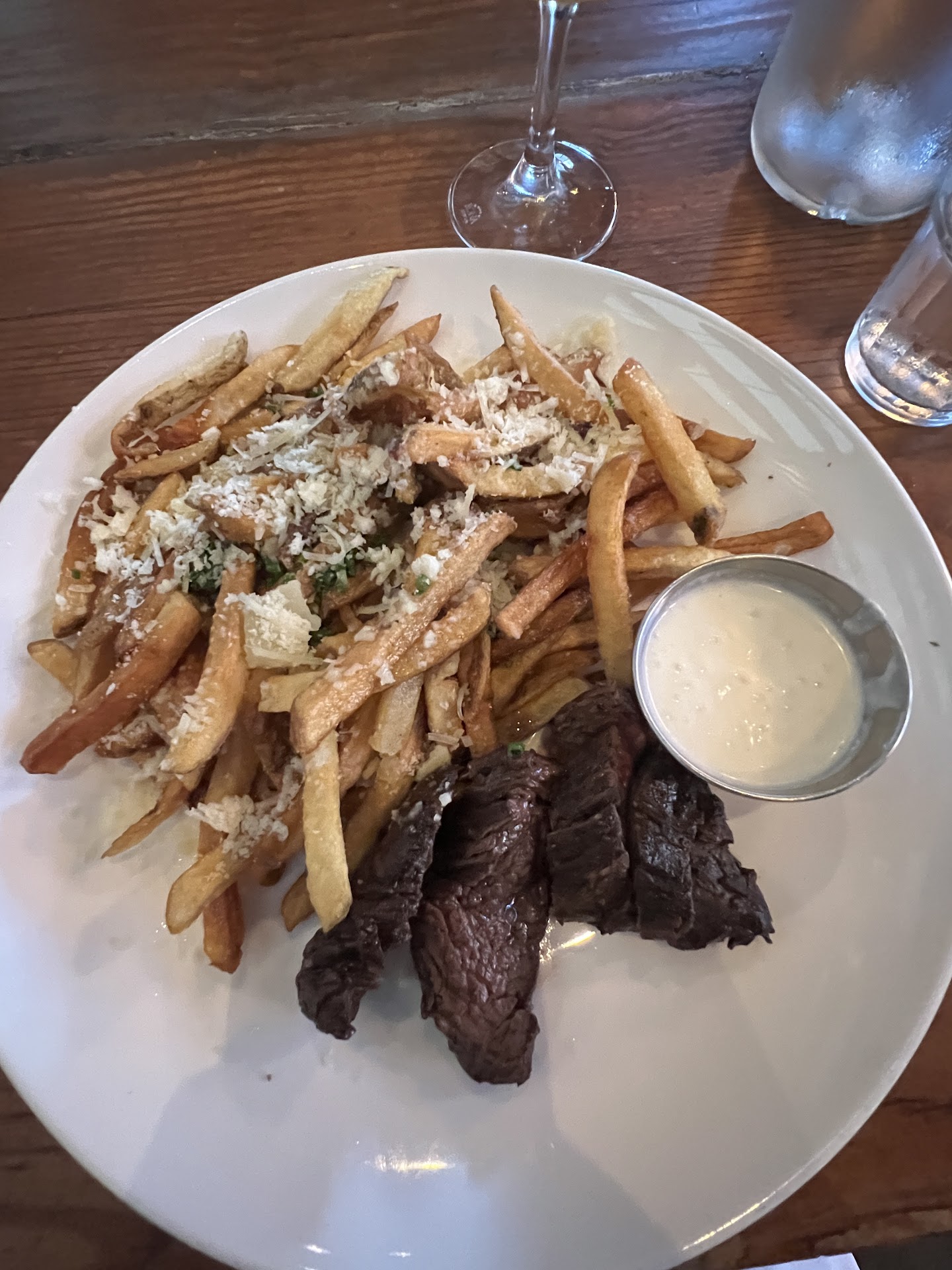 Read moreThe vibe of this place is exceptional! I love the trees out front, the sign, and the option of outdoor seating. The staff were friendly. Everyone who passed welcomed me until I was seated. My waitress, Shari, was outstanding! She was friendly, answered my questions, and even made a great drink suggestion. I enjoyed the hanger steak and fries— absolutely perfect! The steak was cooked perfectly, tender and flavorful! I did request medium well, so some people might have a different preference. The fries were the best I’ve ever had. I hope to return so that I can try something else in the future!