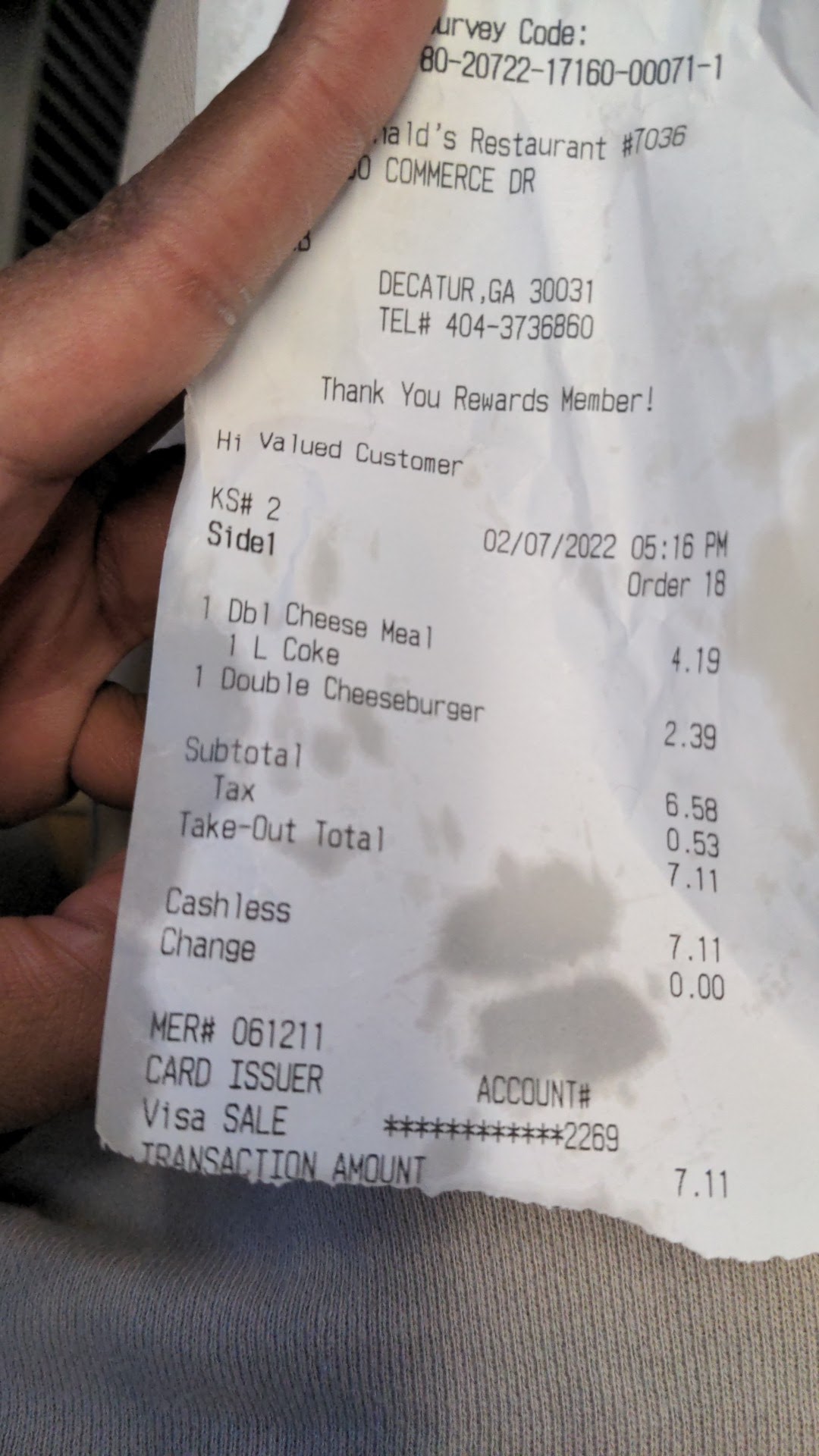 Read moreI stopped by McDonald's Wednesday I ordered fish, 10 piece nuggets and fries to take for lunch. The fish you could barely see or taste the tartar sauce and it taste like iy was sitting all day. The nuggets were dry and rubbery. The fries was the only thing that was good. If I wasn't off the next day and didn't live in that area I would have taken the nuggets back. I held on to them actually until this morning but decided to just throw them away. I didn't want to mess up my day stopping by there again. Just so you know we can tell when food taste like it's been sitting or microwaved to death. Please hire people with at least half a personality. Maybe then the prices won't matter so much. I stopped by McDonald's today on my way to work 4/27/25. This lady was washing the drive thur windows when she finished someone in line ordered a soda without washing her hands she picked up a cup hand placed around the mouth part and fixed someone drink. I ordered a fish fillet that had no cheese on it, and it was really dry. I'm angry because McDonald's continues to raise their prices. My lunch was awful if I wasn't heading to work and checked my food when I bought it, I would have took the mess back. The staff is getting worse by the day at that McDonald's, no customer service at all. Check your...