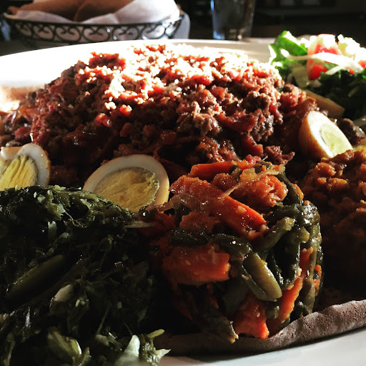 My friend and I visited late one evening after she found this place while doing Uber eats, walked in and everything smelled delicious.. We walked through the restaurant looking around while waiting to be seated,served or asked if we needed sevice, it actually never happened..WOW we were in this place for 13 minutes, looking at the menu and then felt like I had stepped back into the 1920's but didn't see the white only signs, or Ethiopian signs only, they actually did not want to serve us, although there was a couple there dining already, who I thought were African Americans but after hearing their accents and noticing their ignorance also it became crystal clear. My friend asked a man who came out and sat by register(still not acknowledging our presence) for a menu, he never raised a brow and she still wanted to ask questions, I stopped her and asked her, how long have we been in here and no one has even asked if we needed anything? No one offered a menu, or a seat, it is obvious that they do not want to serve us... So unless you have an Ethiopian friend that is there with you or are of other persuasion, most likely you will be treated the same. It seems as though if you were coming from a place of escape and persecution, once you are finally in a place of relief and freedom it would behoove you to treat others as your captors did you.....If I could 0 stars I would.. Place of...