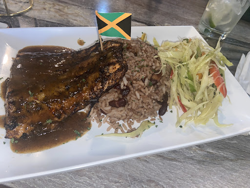 Visually, the presentation is thoughtful and clever: each dish is adorned with a miniature Jamaican flag toothpick—a simple detail that instantly ties the dining experience to the culture it celebrates.