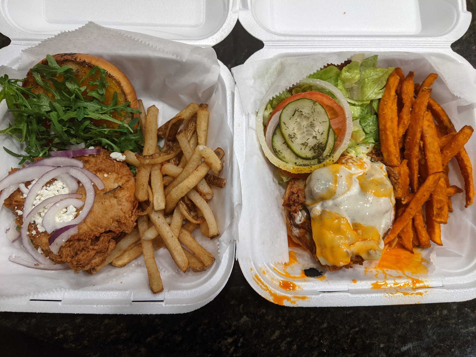 They were out of the first four things I ordered, and I was the first customer of the day. At that point I should’ve just left, but the staff were really nice so I decided to just order what they had. I ended up ordering four different chicken sandwiches to take home for family lunch with sweet potato fries.