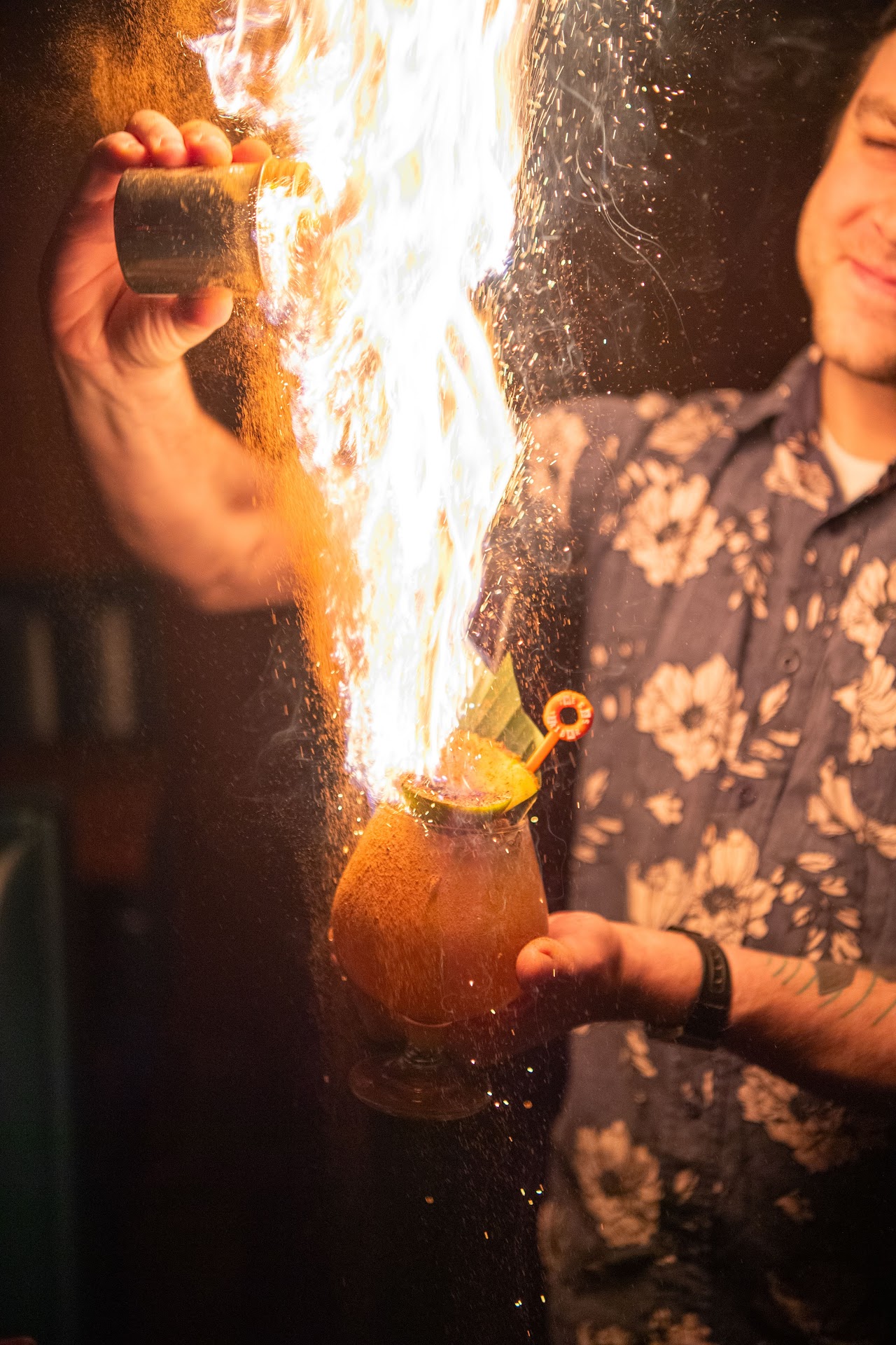 Tucked away in the heart of Decatur, S.O.S. Tiki Bar is a hidden gem bursting with tropical vibes. The surrounding streets exude character, blending historic brick buildings with modern design, and are lined with unique boutiques, fine dining spots, cozy cafƩs, and vibrant bars. Simply wandering around the area, you can feel the charm of this neighborhood.