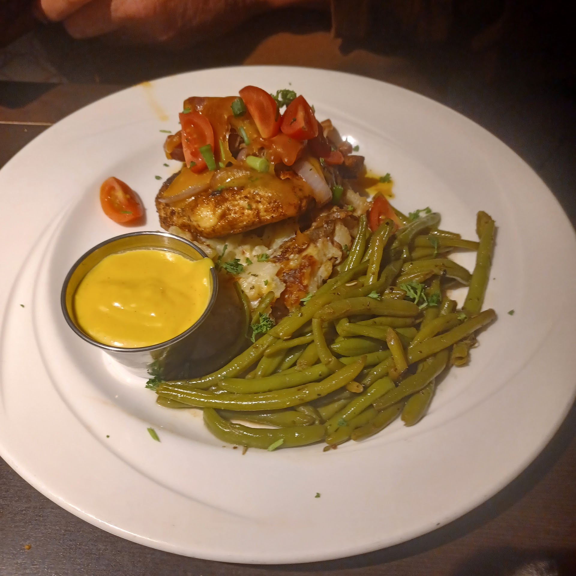 Service was excellent. Food took a while but not an issue since we were there to relax and visit with friends.