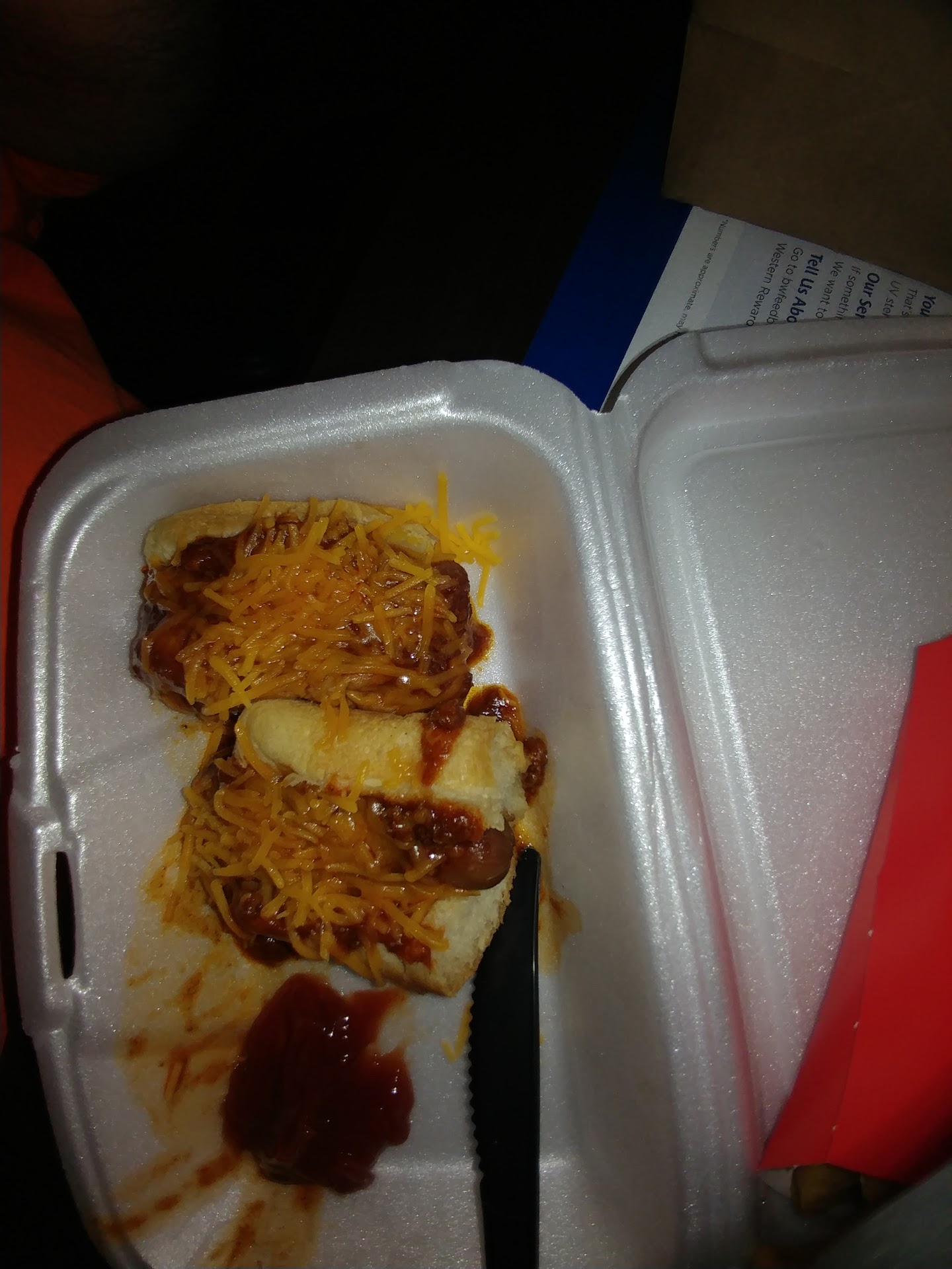 The second visit I ordered the same thing and they gave me everything correct but as I was ordering this time i MADE SURE they heard me say CHILI CHEESE PUPS. they didn't know what they were. I said Chili cheese dogs. they replied "We have chili cheese fries, and chili cheese tots." I asked again for CHILI CHEESE DOGS OR PUPS WHAT EVER THEY ARE CALLED. and they just said pull up for your total. When i pulled up they gave me everything fine but my Krystals and the Pups were DROWNED in mustard.