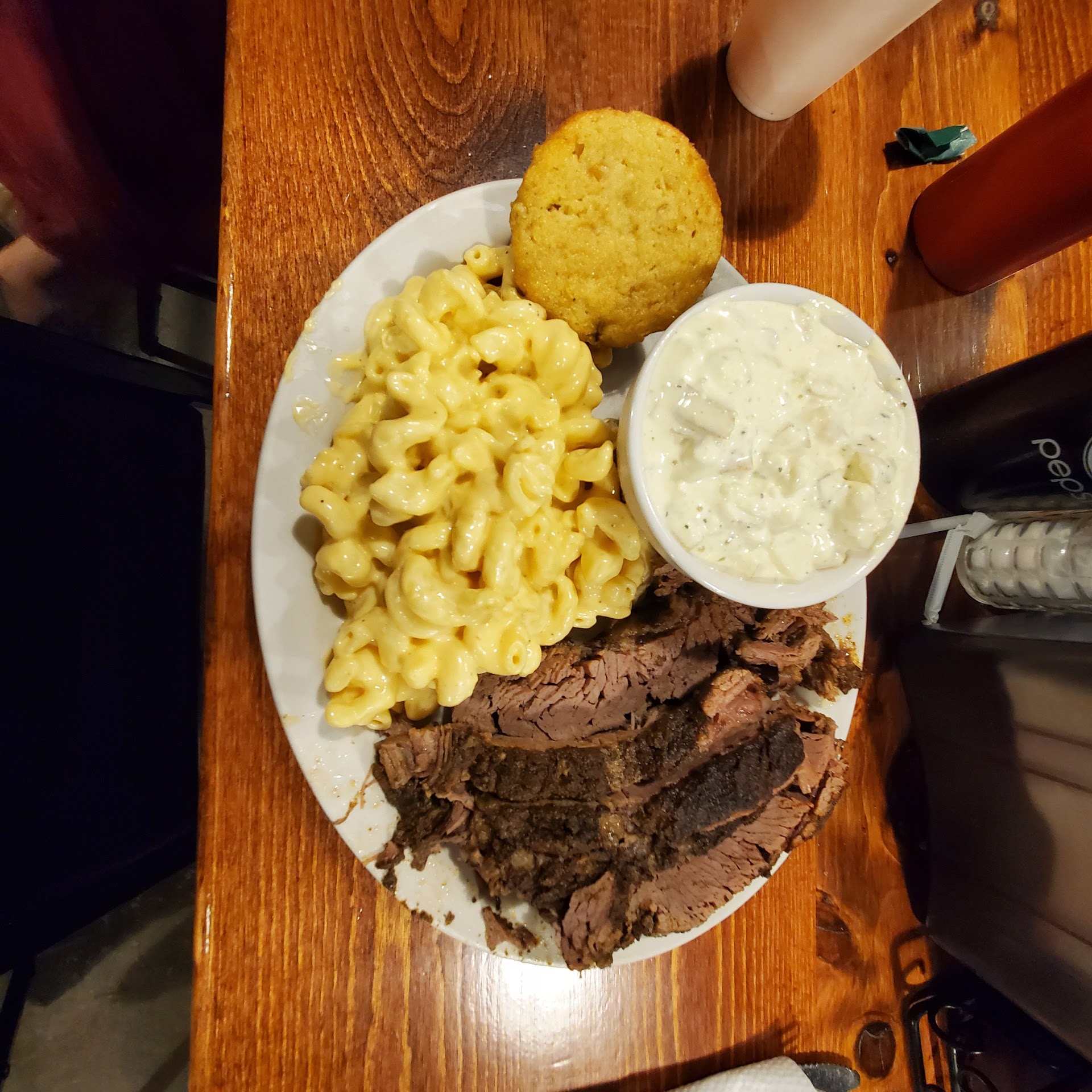 The mac and cheese was standard. Of the entire meal these shined the least. Good texture and sauce just nothing fancy. I would never tell someone what they should and shouldn't be doing but, jalapeños like in the muffins, pulled pork, or even previous days brisket mixed in would top the Mac and cheese off. Either way was good.