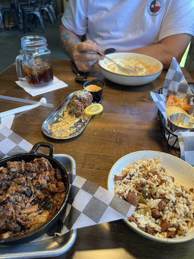 Read moreOk so I appreciate someone starting a new business in the community, and welcome that. The owners stated from California. I am giving a truthfully assessment of food . I can say this food is not cajun at all and does not have Cajun flavors at all. Shrimp and grits way off. Tasted like a spicy Mexican chili sauce poured over the shrimp and grits. Crab cakes flat and tasteless. Burnt ends were not burnt ends it was a clump of shredded pork with mostly fat and gristle, Cheese sauce is not a Cajun dish. Cornbread from the south is not sweet. Need some bread pudding also. I know they have growing pains . I am a former chef, and know how to prepare gumbo and other Cajun dishes all from spending time actually in Louisiana where the real deal is.good luck but attempting to undertake Cajun with no experience is going to be difficult. The staff was very friendly and love the atmosphere. But other than food need zydeco music .but the food needs tons of improvement. Was very expensive for food I did not enjoy. Also I thought was inappropriate the owners shirt read about hate and racism. Granbury is a prominent Republican southern town which bringing democratic political views is not a good thing...