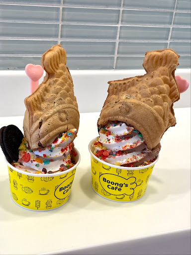 We both got the Boongโs Taiyaki with Nutella spread, swirl ice cream (vanilla /chocolate), fruity pebbles (a courtesy single oreo cookie provided). It was decadent and so delicious ๐ The size was a good portion.