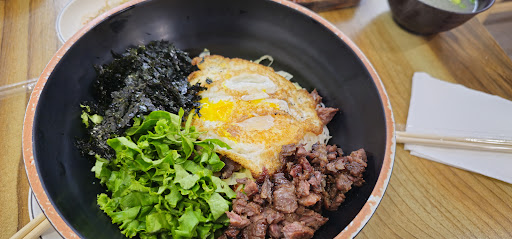 The food was good. I would say 3 stars for taste only because the sauce was sweet for my taste and all of the beverages are bottled. It's ambitious to put a service restaurant in a mall food court. They do have beer, wine, and soju available. The drinks come along with kimchi, potatoes, and bean sprouts as is tradition with Korean food. The entré came with a bowl of steamed rice. The wait staff is so far inexperienced. 1.5 stars for service, midway between fast food and a diner. There was one senior waiter there when I first sat down and she knew how to do her job, hopefully she will be teaching the others. The atmosphere is a solid 3 stars. It's not very cozy but they did do an excellent job shutting out the mall noise. Plus they have a bar and I always love having that option. Seating capacity is 38 at tables plus 4 high chairs and 22 at the bar, but I can't imagine there ever being 60 people in there. Overall I gave it a three because I'm optimistic about the wait staff gaining experience. There was a slight language barrier with English. As far as the mall goes, it's a top pick for the price. As far as Guam goes, it's not a spot to add to...