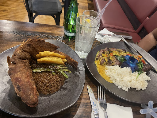 Read moreI came here to dine with friends on a weekday evening and was super excited because I heard nothing, but great reviews. The restaurant is located in the heart of Dedham Square about 30 minutes south of downtown Boston and is very close to the lines of Hyde Park. Upon walking in the space is well lit with a host stand at the door, several smaller party tables along the perimeter of the venue and even has a fireplace surrounded by love seats, a couch, tv, and a neighboring wine rack. My party was for six people so we were nestled towards the back of the dining room past the bar. . Anna, our server was attentive and continued to check in periodically although we had not even looked at the menu after nearly 30 minutes into our reservation. To wine down (see what I did there??) we had Black Girl Magic Rose and added a seafood appetizer of seared sea scallops to compliment the drink. The sauce was a decadent yellow and the dish itself was succulent. Next we orderd the Orchid 7 wings jerk style and the flavor did not disappoint. Spicy is what you expect, but you could taste other smoky flavors beyond that. Our last appetizer were the french fries which were steak cut, seasoned and fluffy on the inside and crispy on the outside. While dining, the chef Paul stopped by our table to ask us how everything was going which showed me how intentional they are with their standard of service. . We placed our order for entrees and I got the coconut curry chickpeas with a a side of plantains. Do not be fooled by the small size of the bowl its presented in! It was A LOT OF FOOD! I was so filled from the apps, I took the rest home and ate out of it four times with my sister! My friends ordered the Grilled Salmon with black rice, the Rasta Pasta and lastly the Orchid 7 Burger which also had huge portions. I wish we had space for dessert (I almost never do (.