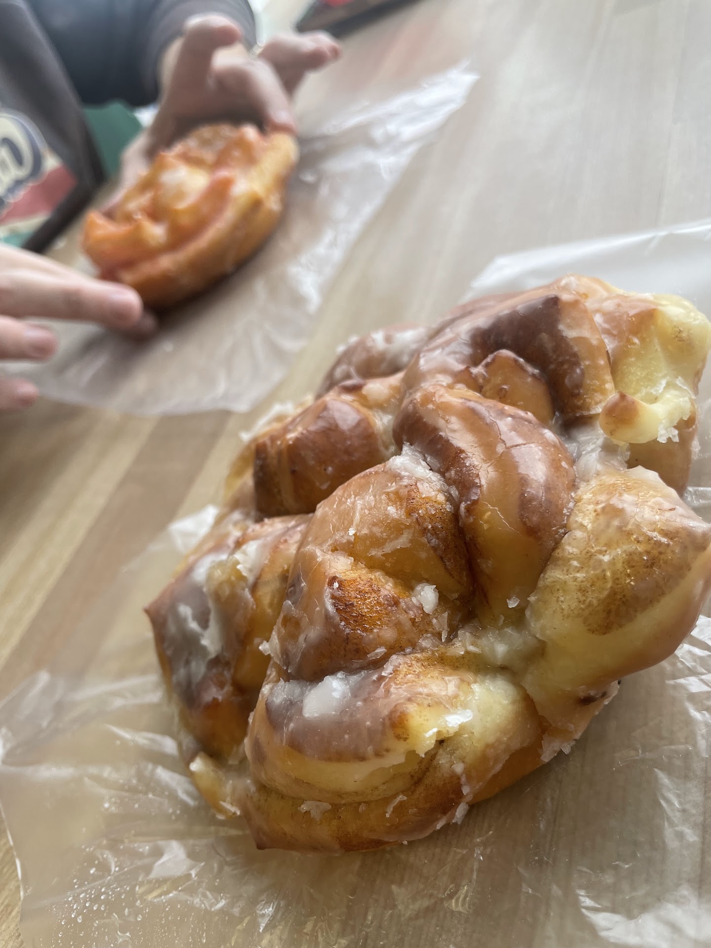 We make it a point to stop here every chance we get! The Apple Fritters are huge, crispy, tasty from first bite to the last bite! The “roses’ flavored with Blueberry, Raspberry or Cinnamon are awesome and the buttermilk bars melt in your mouth. The only downside is that they are closed on Saturday and Monday.
