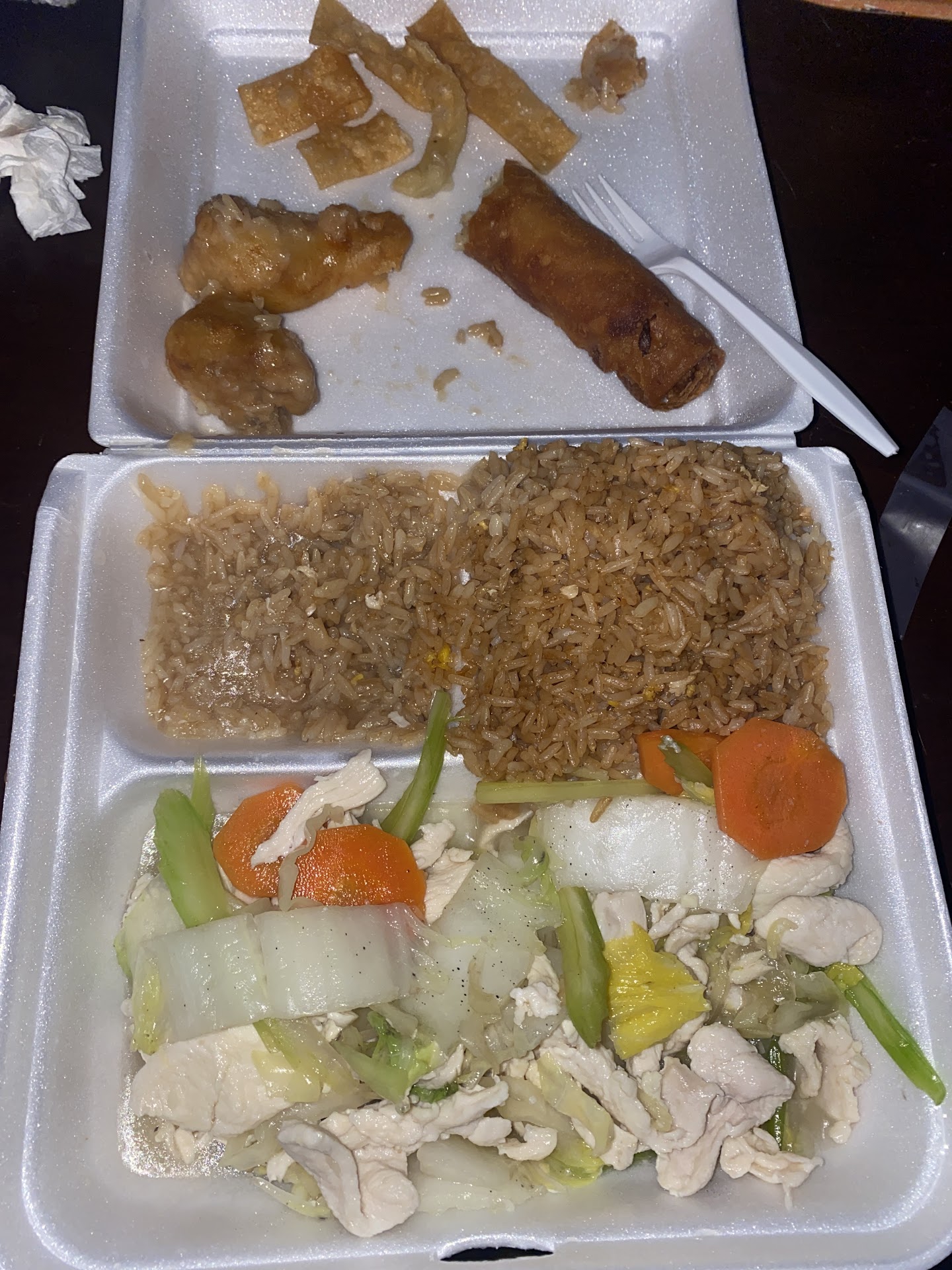 Ā Ā Ā Read moreiāll start off by saying the curly haired cashier was AMAZING and accommodating!! iām a picky eater and she didnāt let that stop me from getting what i wanted with small changes. the food however, was less than what i expected. we paid $40 for two plates and cream cheese puffs, the orange chicken was super chewy :( the lo mein i received had little to no flavor, i had to use a tonnnn of sweet and sour on it :( my husband was disappointed in his fried rice and the portion size, we really wanted to love this place!! the only other complaint id have is the server sweeping right at my feet, we came 50 minutes before closing for a to go order and it felt like we were...