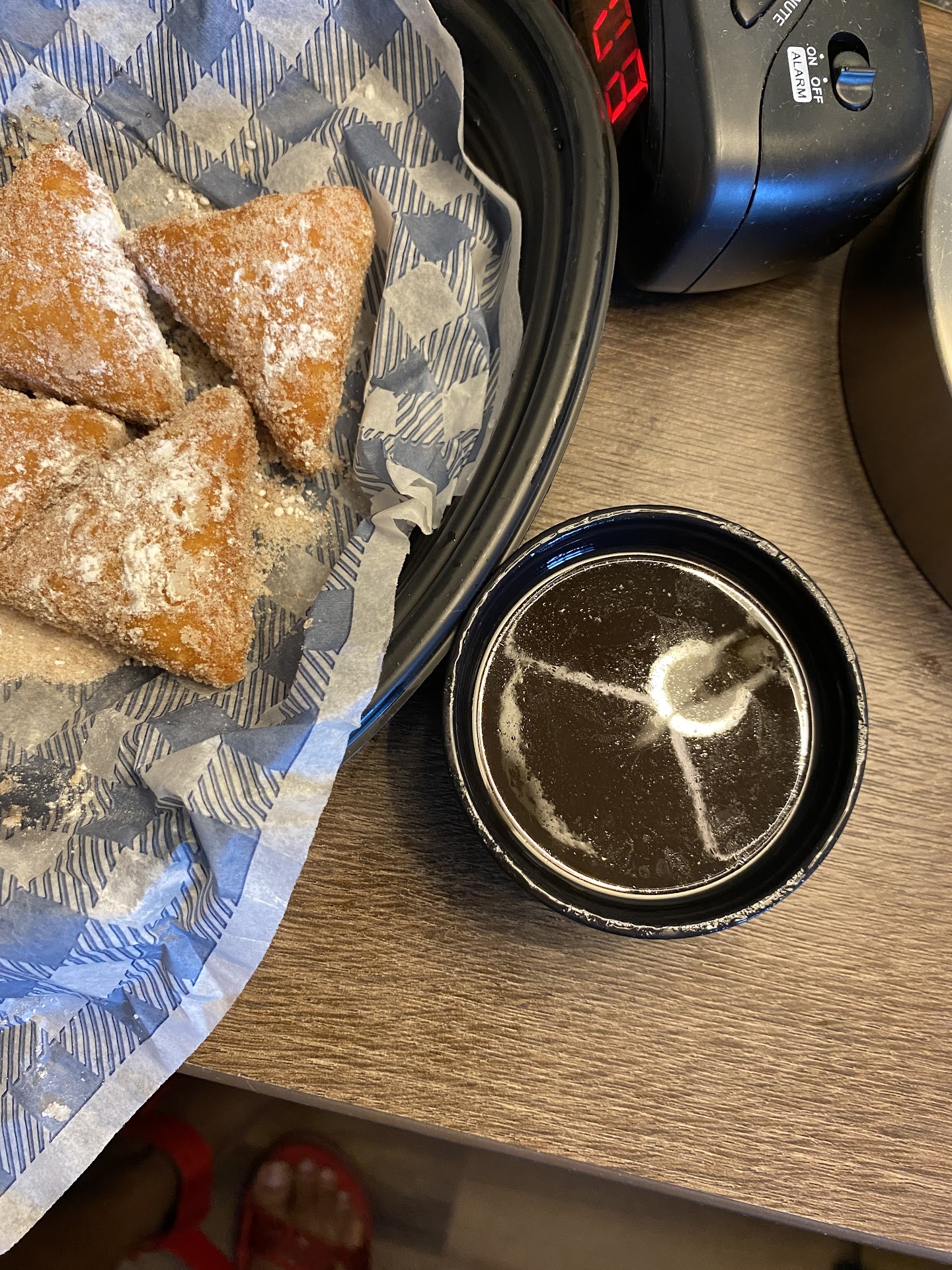 Where do I start? I ordered the beignets that come with the pecan sauce yesterday. I got some beignets and let my kid try one and she did not like it. They gave me syrup instead of the pecan sauce that came with the order, like đ¤ huh. I spoke with the manager Diane(this name came be spelled differently so pardon me if I misspelled it) she said she will check to see if there was a bottle of the sauce left and if so she will make some fresh ones and make the sauce. She did find a bottle left đ. My thing is, why not do the job right in the first place. Shouldnât the company have provided the sauce and not give me some syrup. At first she was saying they should have told me they was out of sauce and then it changed to: let me see if we have a bottle left. Then the syrup was not good, it looked dangerous and oily. The old lady at the front named Mary assumed I didnât pay for the order which grind my gears. After she seen me collect the order from the other associate. Mary seems a little biased, I donât wanna say the R word, but Mary seems a little off with people like myself, was it the dreads I dont know. People with dreads donât steal and the order clearly said online, you canât make an online order without paying. Thatâs not my first run in with Mary by the way đ. I donât like using the R word but itâs a bit suspicious. Iâve included a picture of the oily death trap. I have ordered the Mac n cheese and it was soupy. If you do order, order things people cannot mess up like fries or fried shrimpâŚpancakes and biscuits to name a few. Things like the country fried steak which their breading doesnât stay on are things to watch out for. The steak had a kind of meat bloody taste. I didnât expect that taste since it was fried. Not everything is bad here. The fries are...