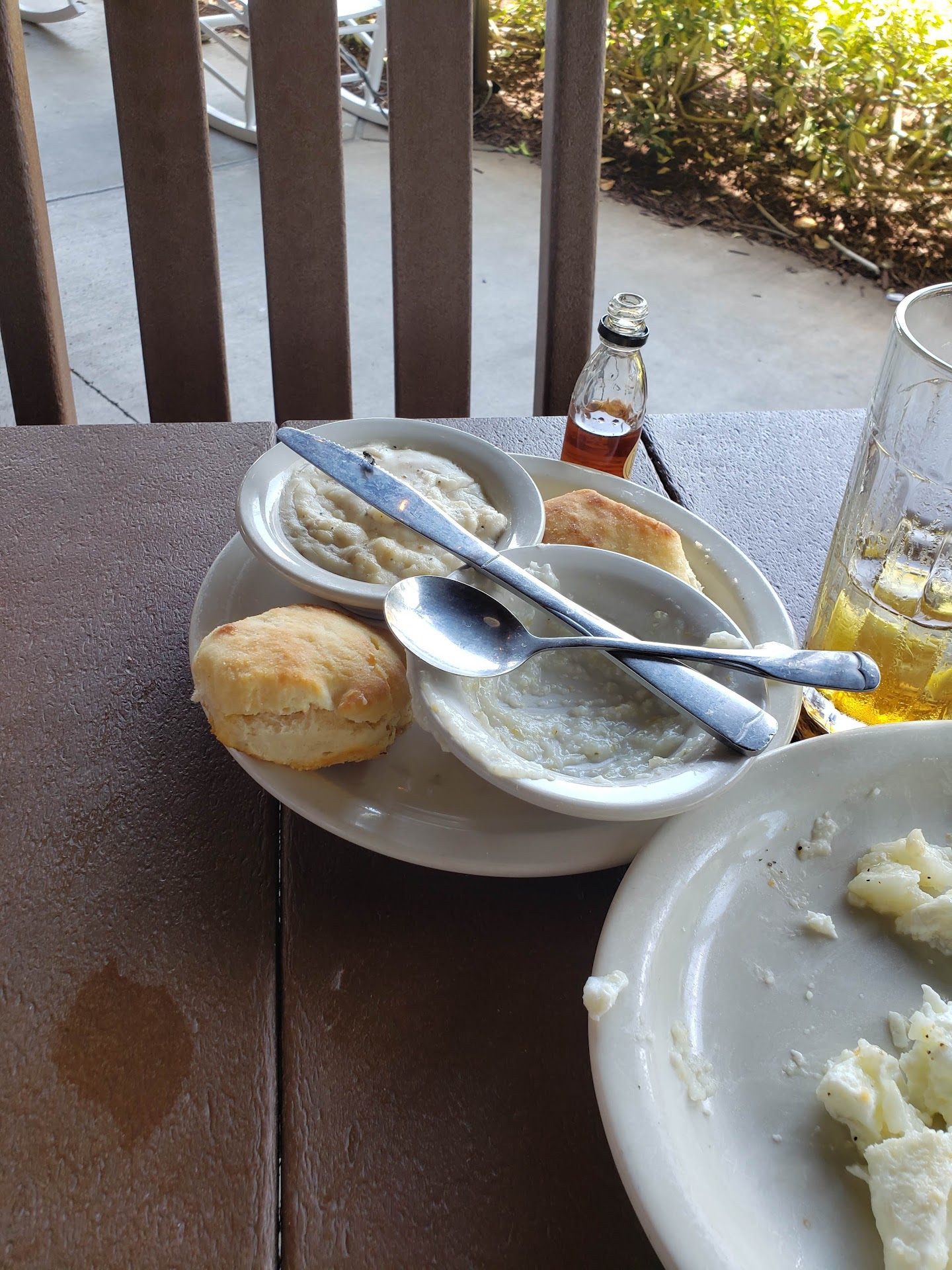 Where do I start? I ordered the beignets that come with the pecan sauce yesterday. I got some beignets and let my kid try one and she did not like it. They gave me syrup instead of the pecan sauce that came with the order, like 🤔 huh. I spoke with the manager Diane(this name came be spelled differently so pardon me if I misspelled it) she said she will check to see if there was a bottle of the sauce left and if so she will make some fresh ones and make the sauce. She did find a bottle left 😂. My thing is, why not do the job right in the first place. Shouldn’t the company have provided the sauce and not give me some syrup. At first she was saying they should have told me they was out of sauce and then it changed to: let me see if we have a bottle left. Then the syrup was not good, it looked dangerous and oily. The old lady at the front named Mary assumed I didn’t pay for the order which grind my gears. After she seen me collect the order from the other associate. Mary seems a little biased, I don’t wanna say the R word, but Mary seems a little off with people like myself, was it the dreads I dont know. People with dreads don’t steal and the order clearly said online, you can’t make an online order without paying. That’s not my first run in with Mary by the way 😂. I don’t like using the R word but it’s a bit suspicious. I’ve included a picture of the oily death trap. I have ordered the Mac n cheese and it was soupy. If you do order, order things people cannot mess up like fries or fried shrimp…pancakes and biscuits to name a few. Things like the country fried steak which their breading doesn’t stay on are things to watch out for. The steak had a kind of meat bloody taste. I didn’t expect that taste since it was fried. Not everything is bad here. The fries are...
