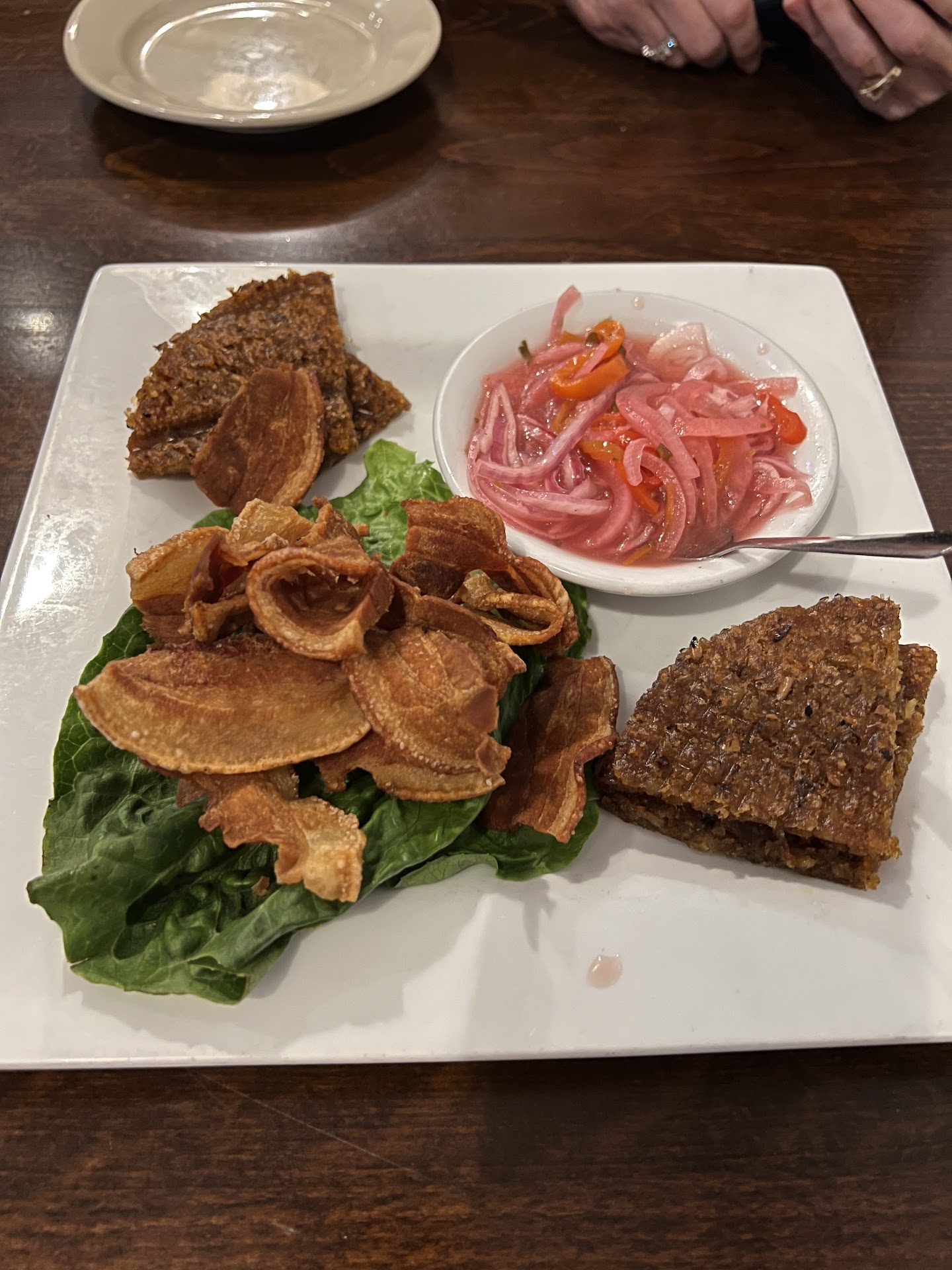 Also, and this is important: try the chocolo arepa with cheese. It is literally the best "arepa de chocolo" I've ever had, here or in Colombia. It's phenomenal and has the potential to change your life. The pan de bono is also excellent, and the chicharrones get the chef's kiss. Crunchy and meaty and just delicious.