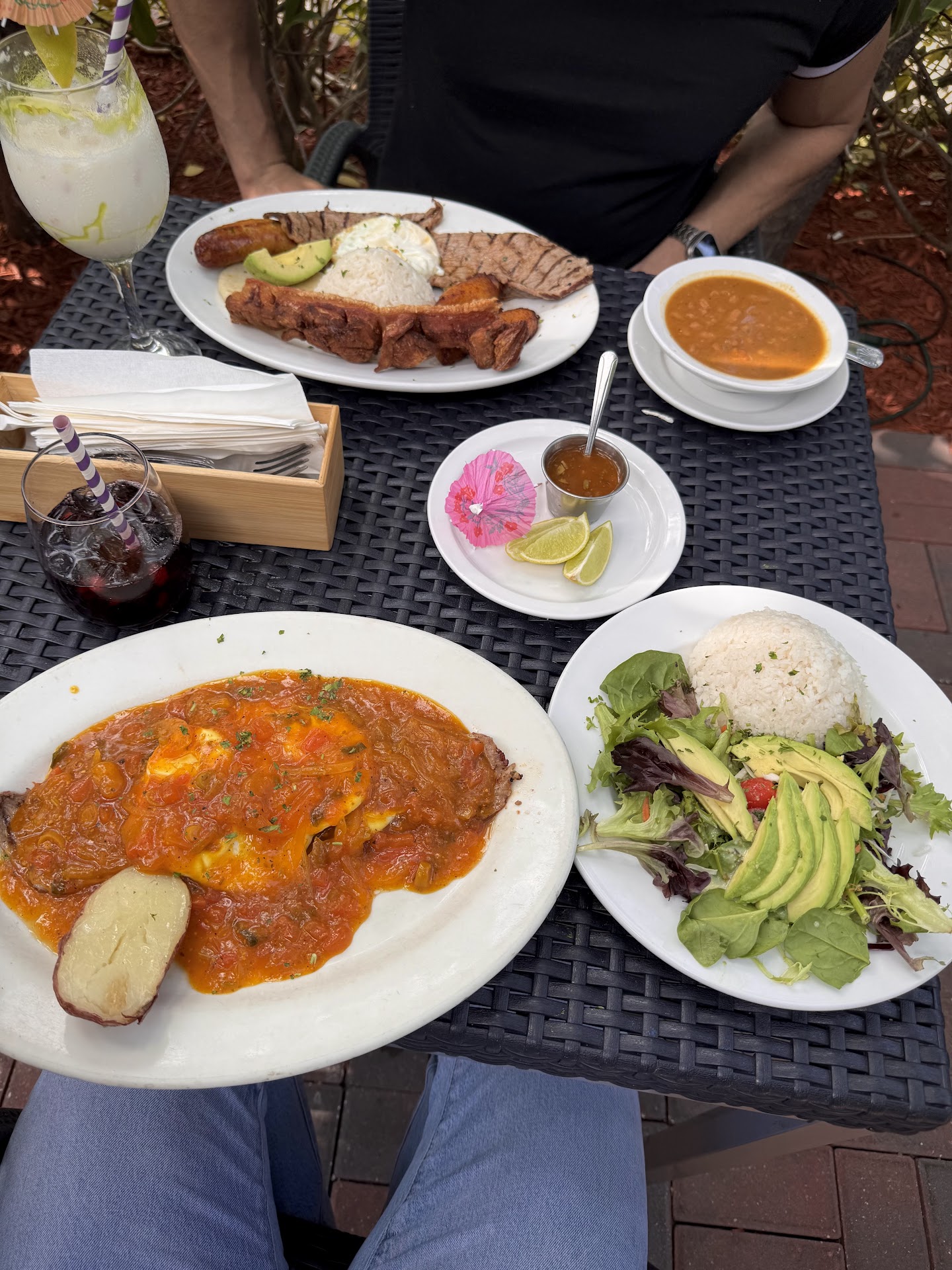 El Balcon de las Americas in Deerfield Beach is a nice restaurant that allows you to seat inside or outs. This location has lots of waitresses that help/serve you all the time. This time Anabela was our waitress and was very helpful, she explained the dishes very well, offer us the specials, brought us drinks and checked on us very often. The food. We ordered a bandeja paisa and mondongo. These are traditional Colombian dishes that need to be prepared correctly or they will take wrong. At this time the bandeja paisa was tasteful and served in decent portions not too much I think a good size, on the contrary, the fried pork skin or chicharron is big, the restaurant is very generous with the portion. I think the bandeja paisa is a 5 star dish at this location. Now the mondongo. Tasteful and generous this soup had mixed flavors that are perfect for a person who likes this dish. One of the issues that I have noticed with this type of soup is that if is not cooked correctly at the end it will be salty. However that is not the case at this location.