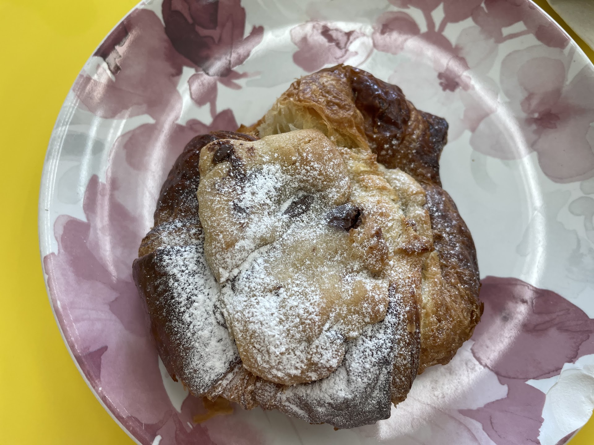 What I typically order… almond croissant, chocolate croissant or a combo (sometimes they create new things like the chocolate chip croissant in the pic). All their croissants are good! ham and cheese quiche, it’s just simply the best and they gave you a good size slice with a side salad. If I need something quick to go then I get the spinach pastry you see in the pic.