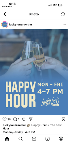 Pro tip for newcomers: happy hour runs 4–7 PM weekdays and 11 PM–midnight nightly. The $1 oysters are bar-only (worth every seat you might wait for), and the bartenders keep the energy fun and easygoing. Bring a light jacket if you run cold — Lucky Lou’s keeps the fans (and the vibes) refreshingly chill.