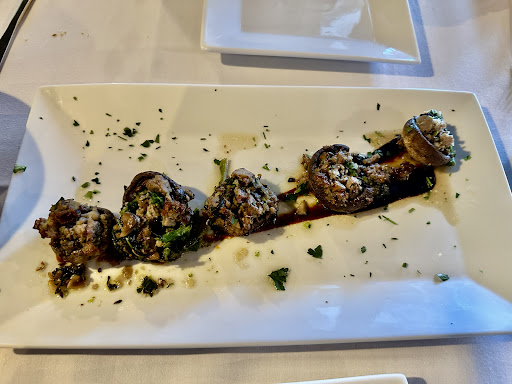 The food was amazing. The special stuffed mushroom appetizer, pictured, was stuffed with sausage, cheese, garlic, and broccoli rabe. The Chicken Parmagania and Branzino were perfectly cooked and seasoned.