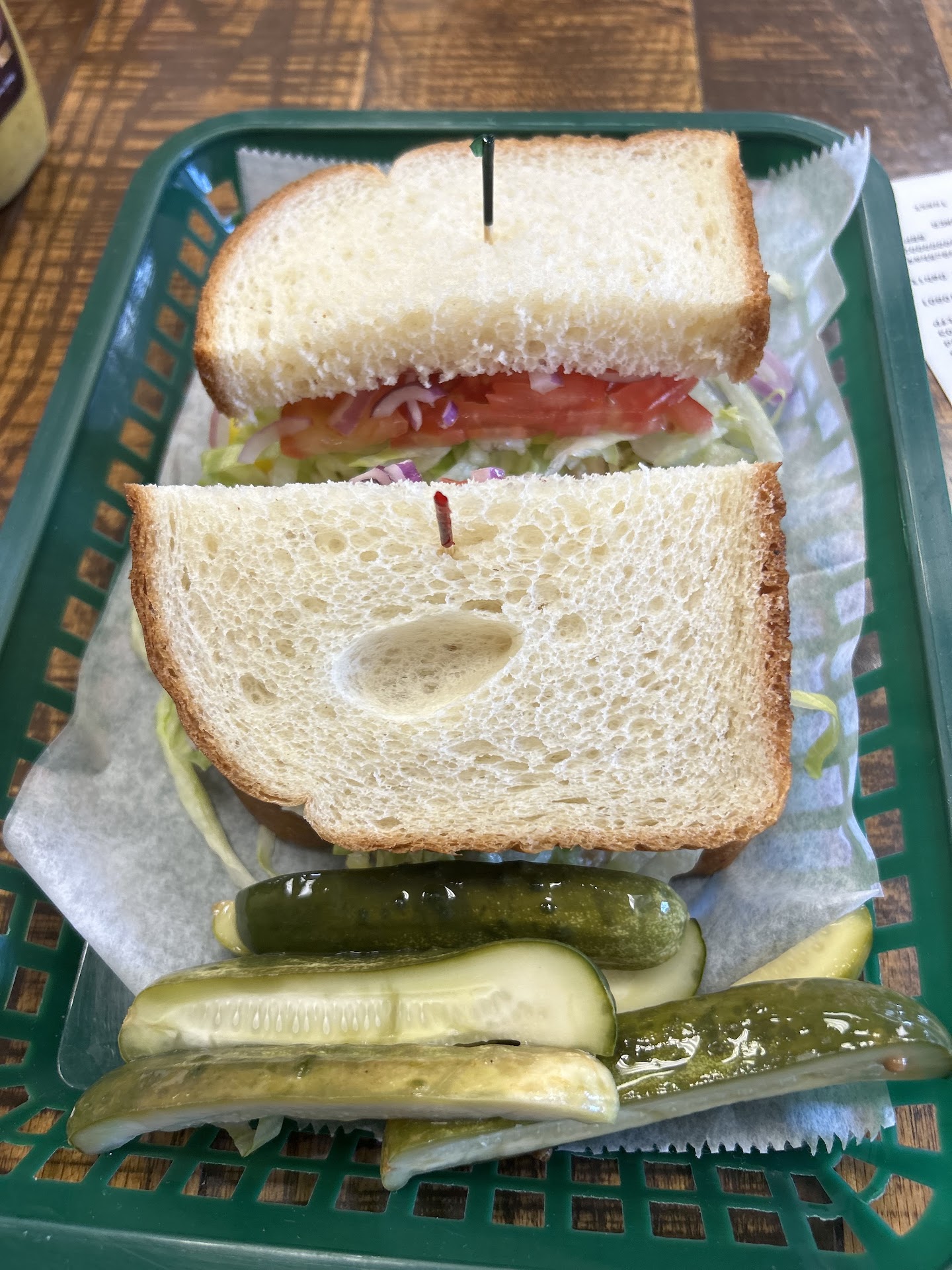 They have a few tables inside and they were full when we first arrived. I think a lot of people get their food to go. If it hadn't been so miserably hot out I would have suggested eating in one of the nearby parks. I found out about the Pickle Barrel from an article about kayaking in the area and they suggested getting lunch to go from here. If it was cooler I would love to get takeout from here and have a picnic in nearby Sullivan Park where you can watch the boats go by. Come hungry because this sandwiches here...