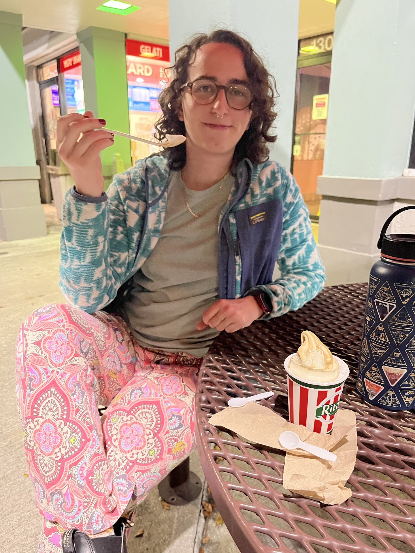 Came here after an encounter with a rare opportunity as a celebration. As fortuitous as it should be, my sons birthday coincided with the Blue Moon in Pisces. We had an incredible day together, which are becoming more common as his mother is allowing to see him more often. Johnathan requested Italian ice as the capstone for our day together and off we went. This Rita’s location had recently opened near where I am currently living, and after a negative experience of disallowing astral projection at another unnamed Italian Ice Peddler, we came here. I ordered a Gelati with Chocolate ice and Vanilla Gelato, and Johnathan ordered a Mango Italian ice in the size of Medium. As we sat on the pictured bench and enjoyed this special moment together, Johnathan told me about his dreams and visions of the future. I love my son and I am thankful to Rita’s for being a sweet ending to our...