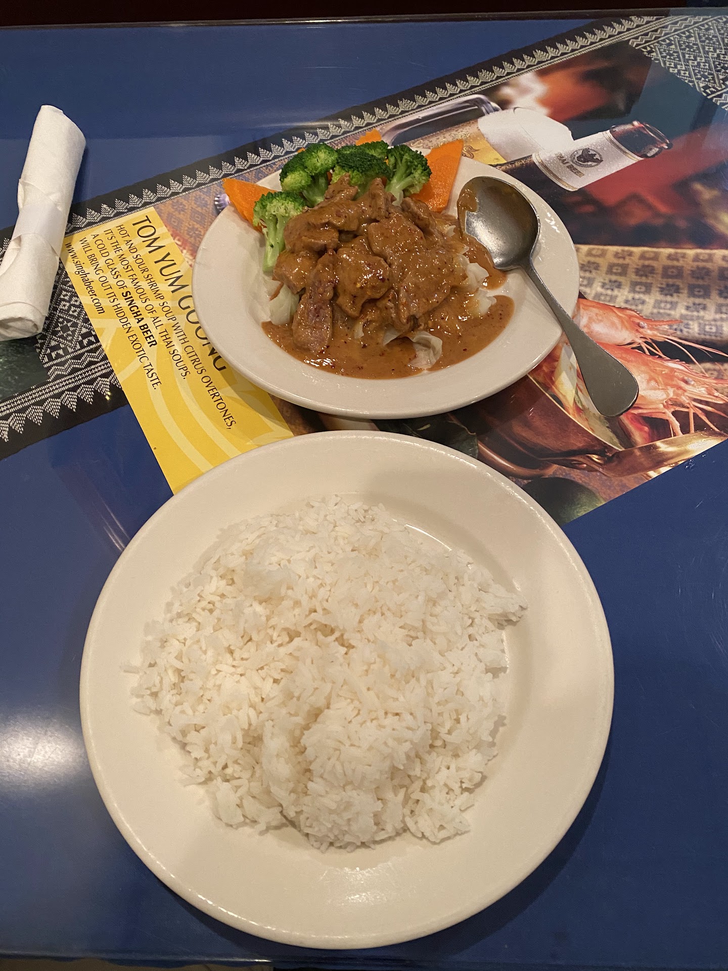 Read moreI have been to this place over ten years ago and have since forgotten about it. I just happened to turn into the plaza looking for a place to eat and remembered this Thai restaurant was here. I decided to give them my business tonight. I am pleased I did. The service here was top notch. They say me down immediately. I had a server approach me within a minute or two to ask if I wanted anything to drink or if I had my order already planned out. I happened to see something on the menu that caught my eye. Peanut sauce. I ordered a plate of peanut sauce with beef. I was asked how spicy I would like my food. I was told the levels were 1-4. I chose 4. The server also mentioned to me that if I requested it, I may have it even spicier than that! How nice of her to inform me. So the food came out within 15 minutes. It was presented to me in a very decorative fashion. Someone took the time to arrange the carrots to look like the top of a crown. This was a nice touch. I was served a nice portion of rice. He even asked if I wanted more and then gave it to me. The food was delicious!! It wasn’t overbearingly spicy and the food was very well prepared. I am glad that I stopped in tonight and gave them my business. I hope more people will come and check this place out for themselves. Overall 5 stars. Will come back again or order takeout. Thank you once again for the...