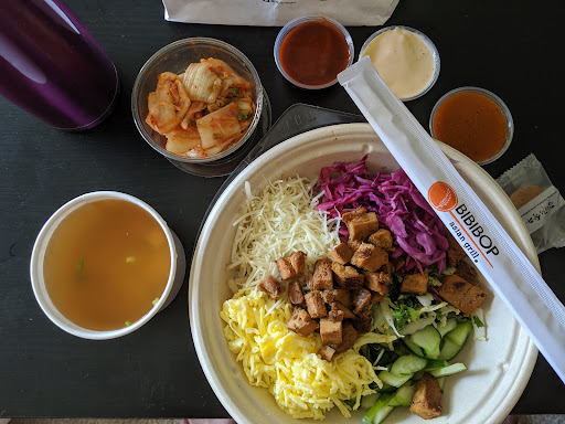 Read moreThis was my first time visiting a Bibibop franchise, and I Absolutely fell in love & feel like I found a new favorite joint. The menu is very simple to order from, and the food was awesome. I like it that you start from a slightly bland dish and you can control the strength of the flavor with the different sauces on the side - far better and healthier option than sodium riddled food out there nowadays. I love the gluten free, vegan & vegetarian option that you can take when building the bowl. I was delighted to find this place for a vegetarian friend of mine. (No doubt she already knows about this place though) This particular location seems it had just opened, and itâs immaculately clean with very modern seating areas. The staff are extremely friendly and fast. I went there at noon - right at the peak lunch hour. It was very busy but still it took me less than 5 minutes to walk away with my food. ...