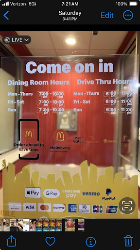 Drive thru was extremely slow. About 3 minutes per vehicle. 1st window Rep didn't look at me or say one word, just stuck the receipt out the window. 2nd drive thru Rep smiled and said have a nice day as he handed me the bags. I typically inventory my order efore exiting the establishment's parking lot and it's a good thing I did. My medium french fry was literally half full. I checked the bag, in disbelief, surely they had just spilled out. Nope! Not a single stray fry in the bag. Please note: I'm a very tolerant consumer. I rarely complain to a rep about anything. I'm the type to almost never even honk my horn when cut off by a negligent driver with their face glued to their phone. Sorry, I digress. I park near the entrance and stomp my way to the counter, shoulders puffed to twice their normal size, steam jetting from my ears, eyes devil red. Before I could bellow the words "WHAT THE HECKY" the the Rep read my mind, apologized and handed me an overflowing, fresh, hot, medium order of delectable fries. The stars aligned and all was good. By the way, I was kidding about my militant approach to the counter. I never get angry over food and know better than to take it out on the rep not knowing if they are the responsible party. Nevertheless it wasn't a great or good McD's rendezvous. Your...