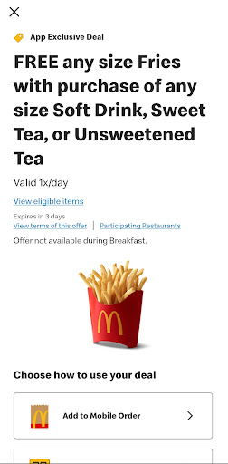 Read moreTwo stars because the food portion of my order was correct. I want to preface this by saying I rarely eat at McDonald's and on an even more rare occasion, I drink pop. With that being said, I thought McDonald's served mountain dew (or mellow yellow). I ordered that to drink and my food, no issues. I arrive to the pick-up window and I am handed a different drink. I told the man at the window that wasn't what I ordered. I had to repeat myself 2 or 3 times before he decided to take his airpod out of his ear. That right there is extremely rude and unprofessional in a service industry when your entire position requires listening to and talking to customers. He proceeds to laugh while explaining "this is McDonald's, we don't have that" and repeating that they don't have mountain dew. He seemed annoyed that he might have to get me a different drink but I told him I would just take the drink because at this point, I just want to be done with this interaction and honestly, I don't know what their drink menu is. So I'm not understanding why the man taking my order didn't tell me that they don't carry that drink and just picked a completely random drink for me so I felt like an idiot when I got to the pick-up window. I hate to leave a bad review based on one employee/ one experience but the unprofessionalism was...